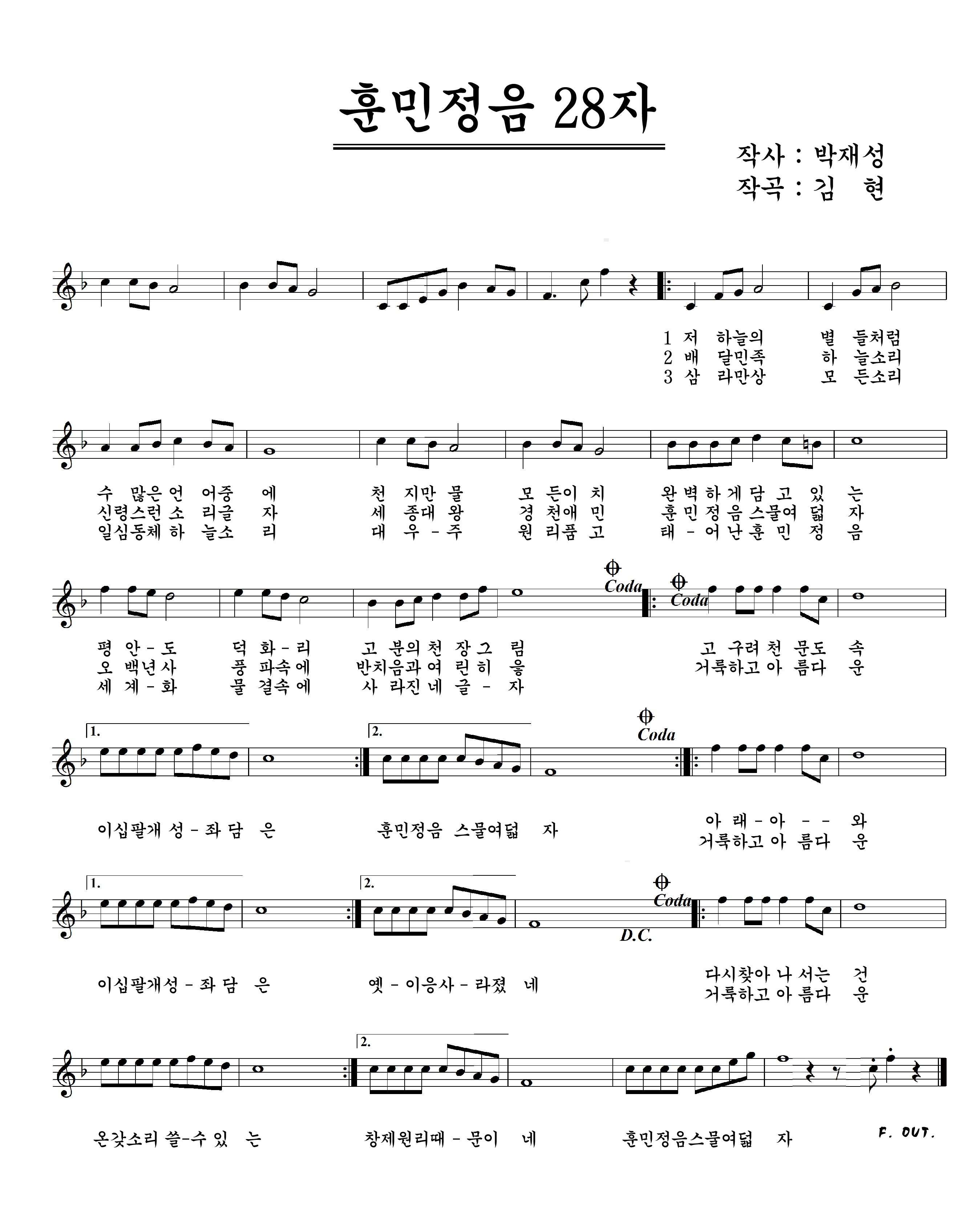 훈민정음 28자 작곡 헌정(박재성 작사 김현 작곡)