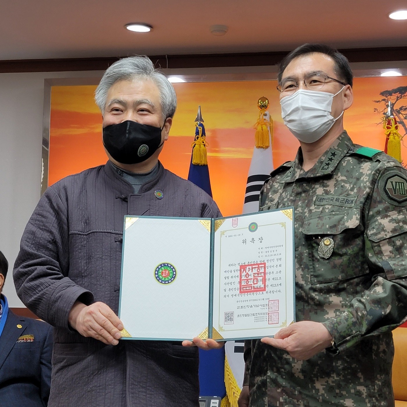 2021년 3월 19일, 박재성 이사장은 강원도 양양 소재 제8군단을 방문하여 군단장 강창구 중장에게 훈민정음탑건립조직위원회 고문 위촉장을 수여하였다.