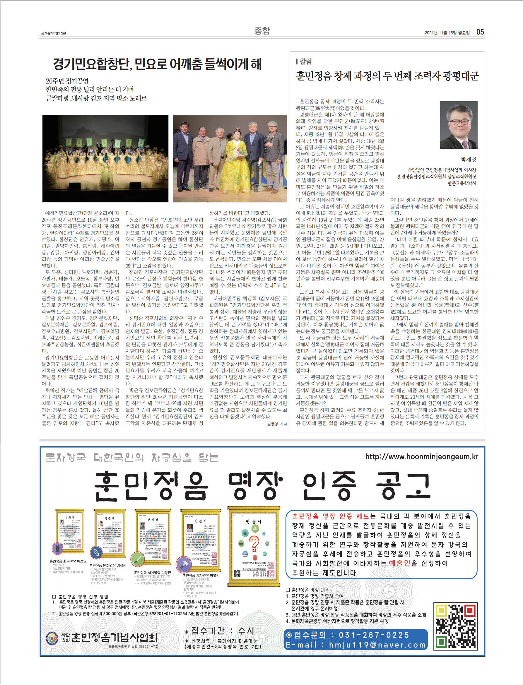 [서울경기행정신문] 훈민정음 창제과정의 두 번째 조력자 광평대군