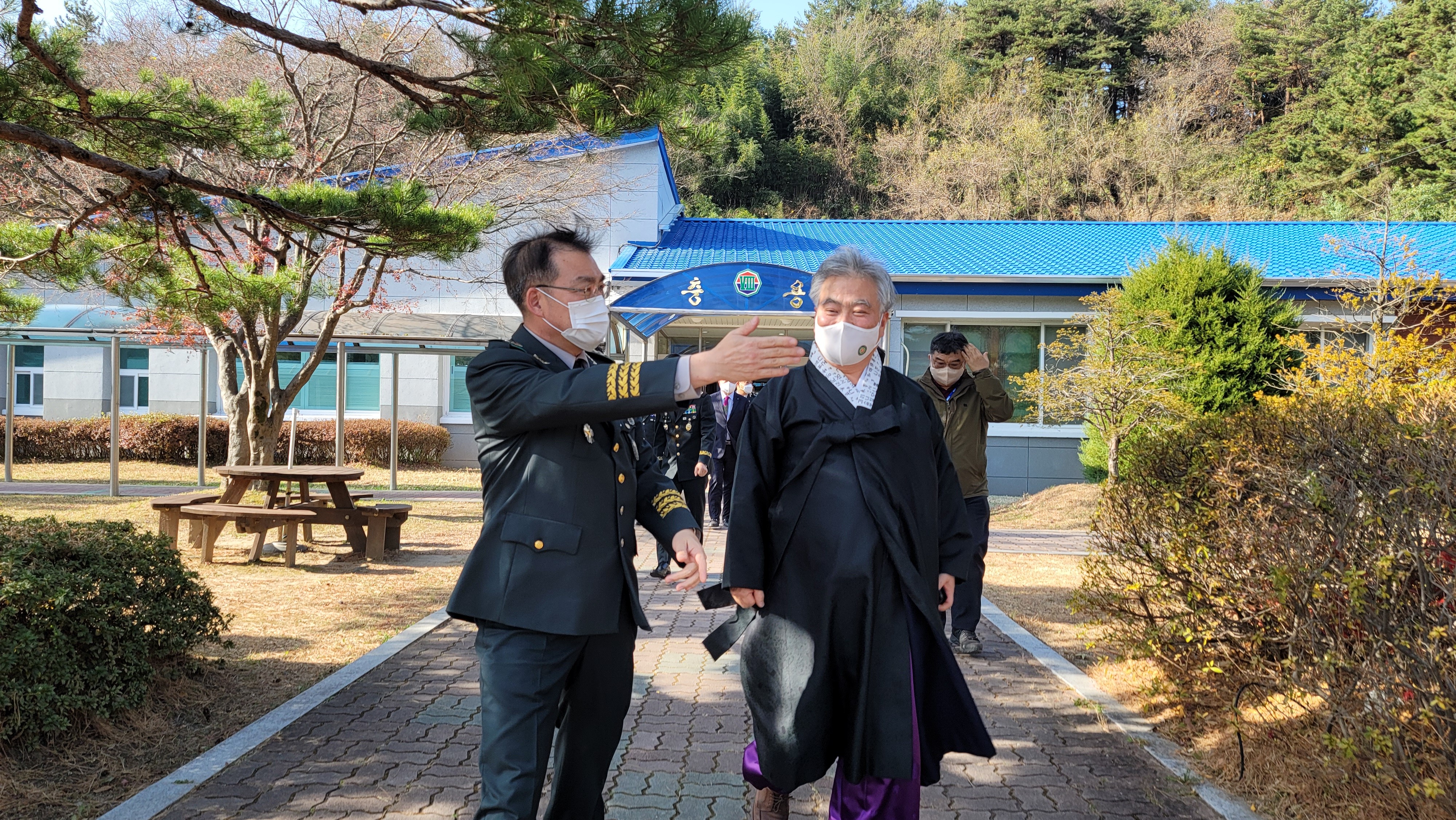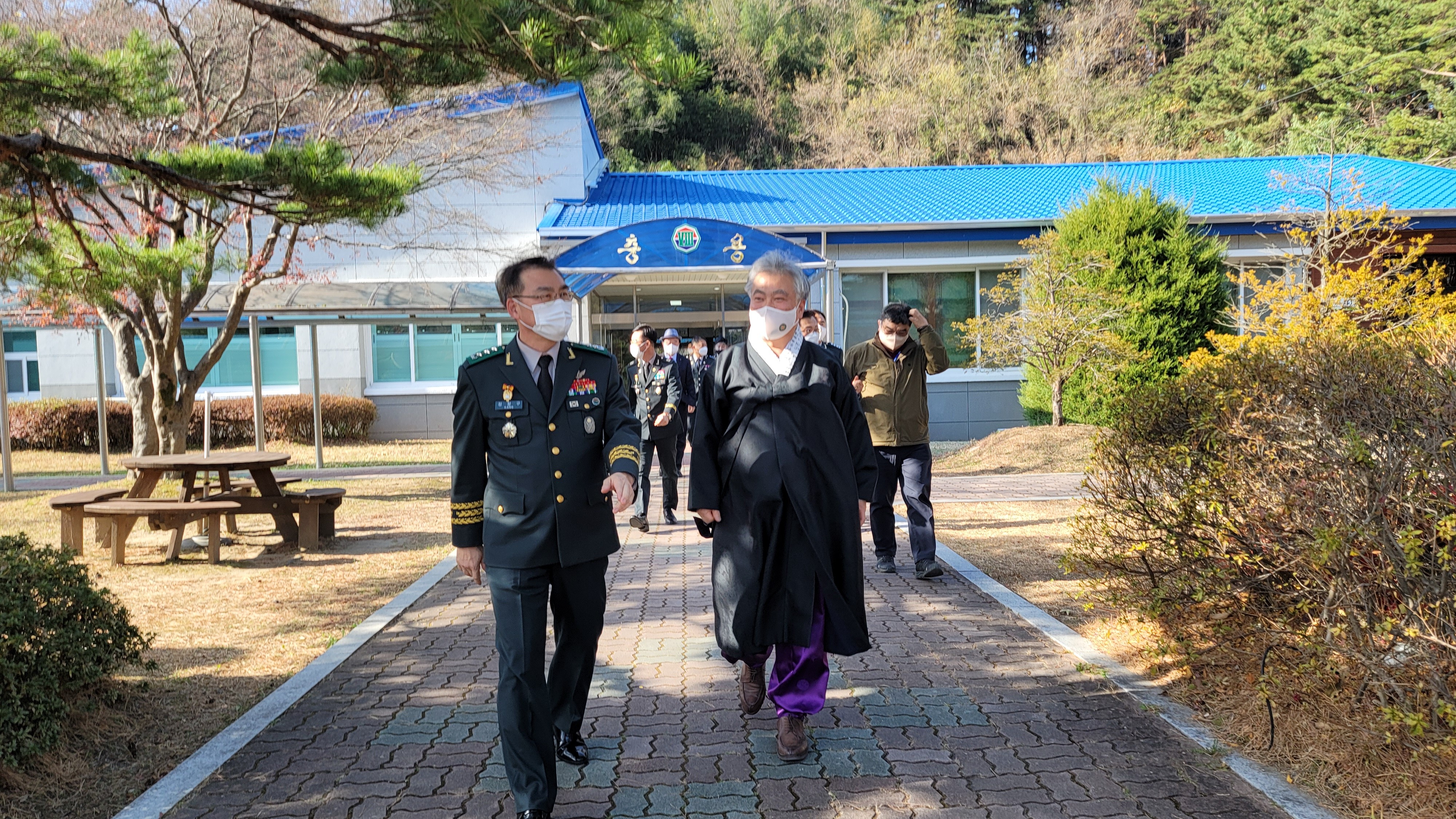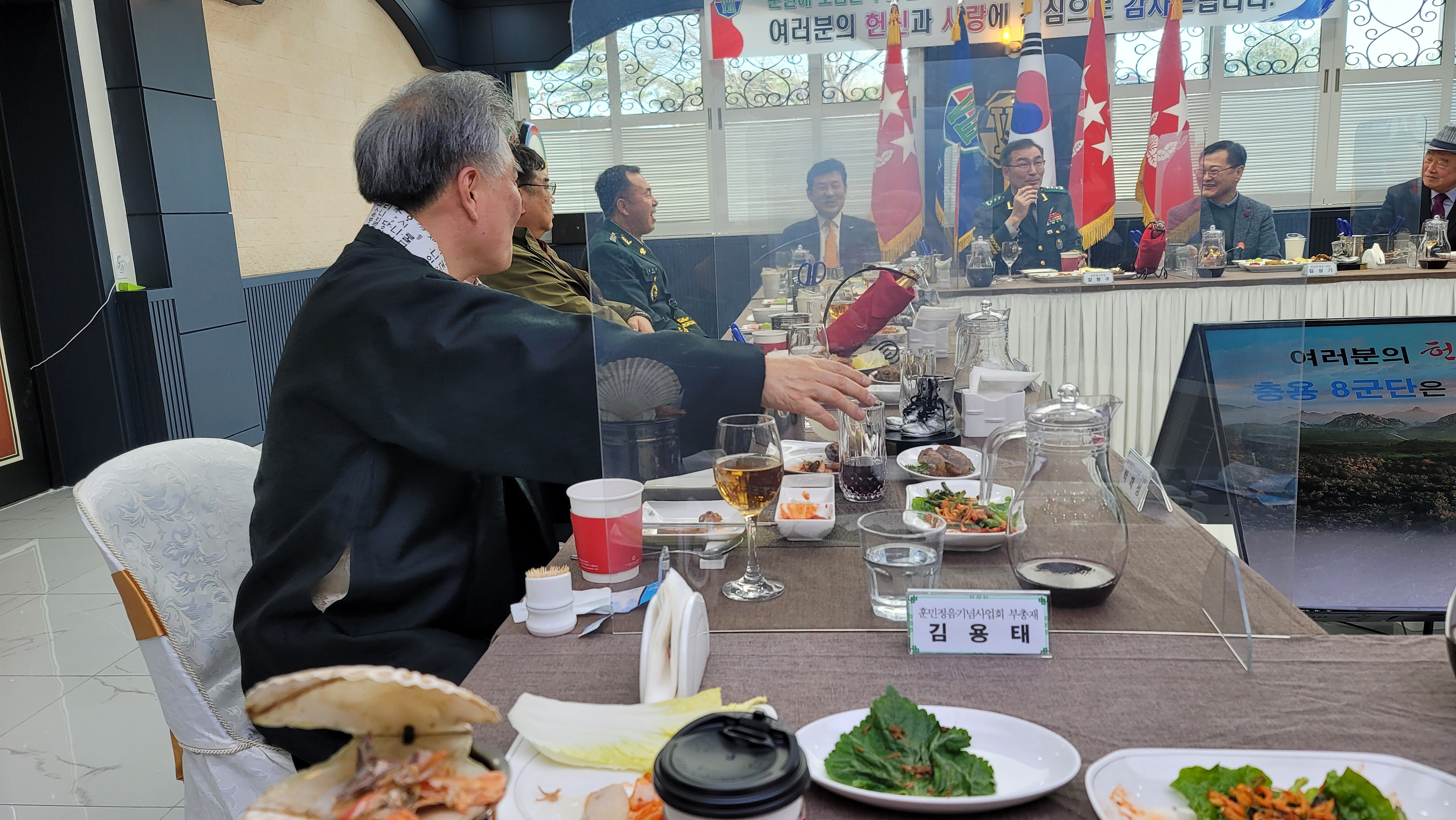 2021년 11월 25일(목) 오전 11시 30분 육군 제8군단장 강창구 중장 초청을 받고 8군단을 방문한 사단법인 훈민정음기념사업회 박재성 이사장은 병사들의 피복 및 전투식량 등에 대해서 강창구 군단장으로부터 설명을 들었다.