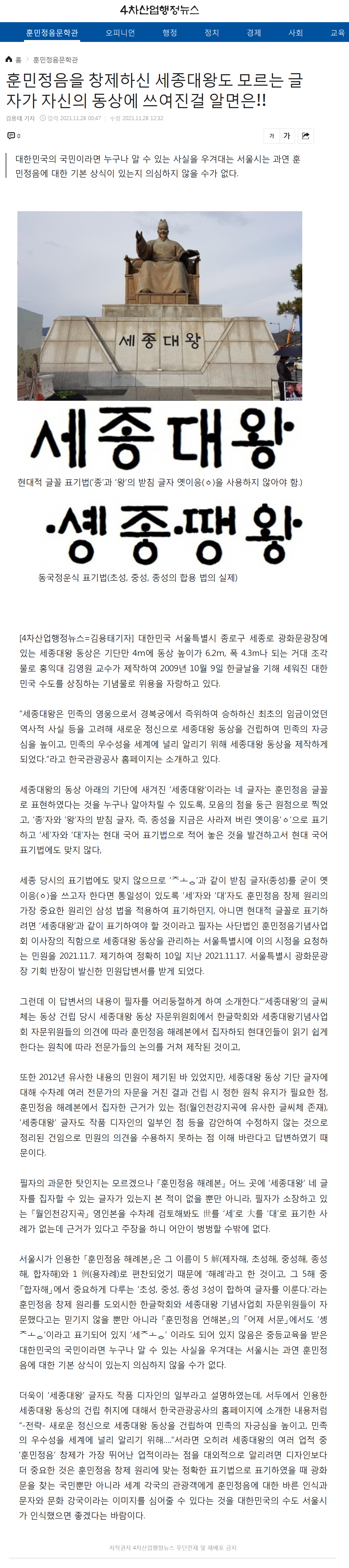 [경인신문] '세종대왕'도 모르는 훈민정음