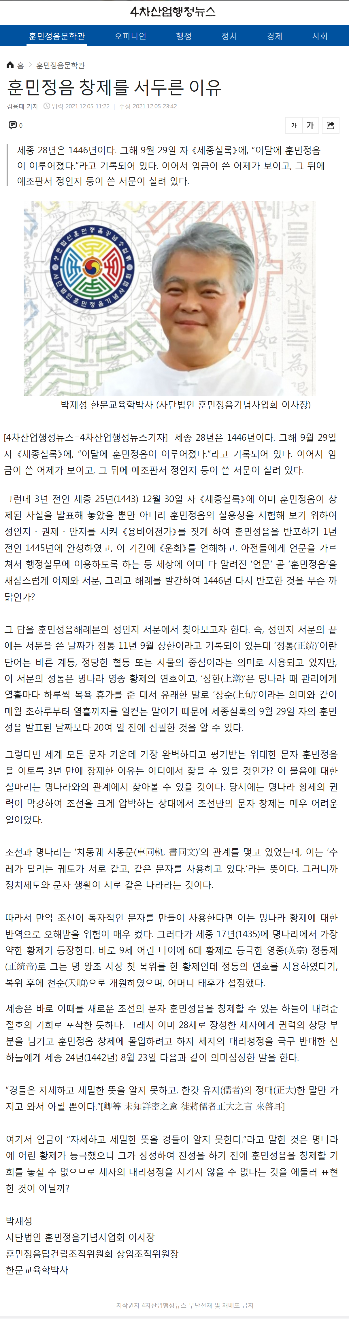 [4차산업행정뉴스] 훈민정음을 창제를 서두른 이유