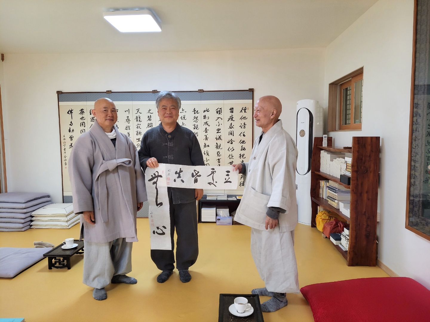 ○ 대한불교 조계종 제35대 총무원장을 역임한 설정 큰스님은 대담 후 서예와 한문학을 전공한 사단법인 훈민정음기념사업회 박재성 이사장에게 무심(無心)이라고 쓴 친필 작품과 저서 등을 선물하면서 훈민정음기념사업회를 이끌어가다 보면 예상치 못한 여러 가지 어려움이 닥치더라도 절대로 실망하지 말고 최선을 다해달라고 당부하였다.