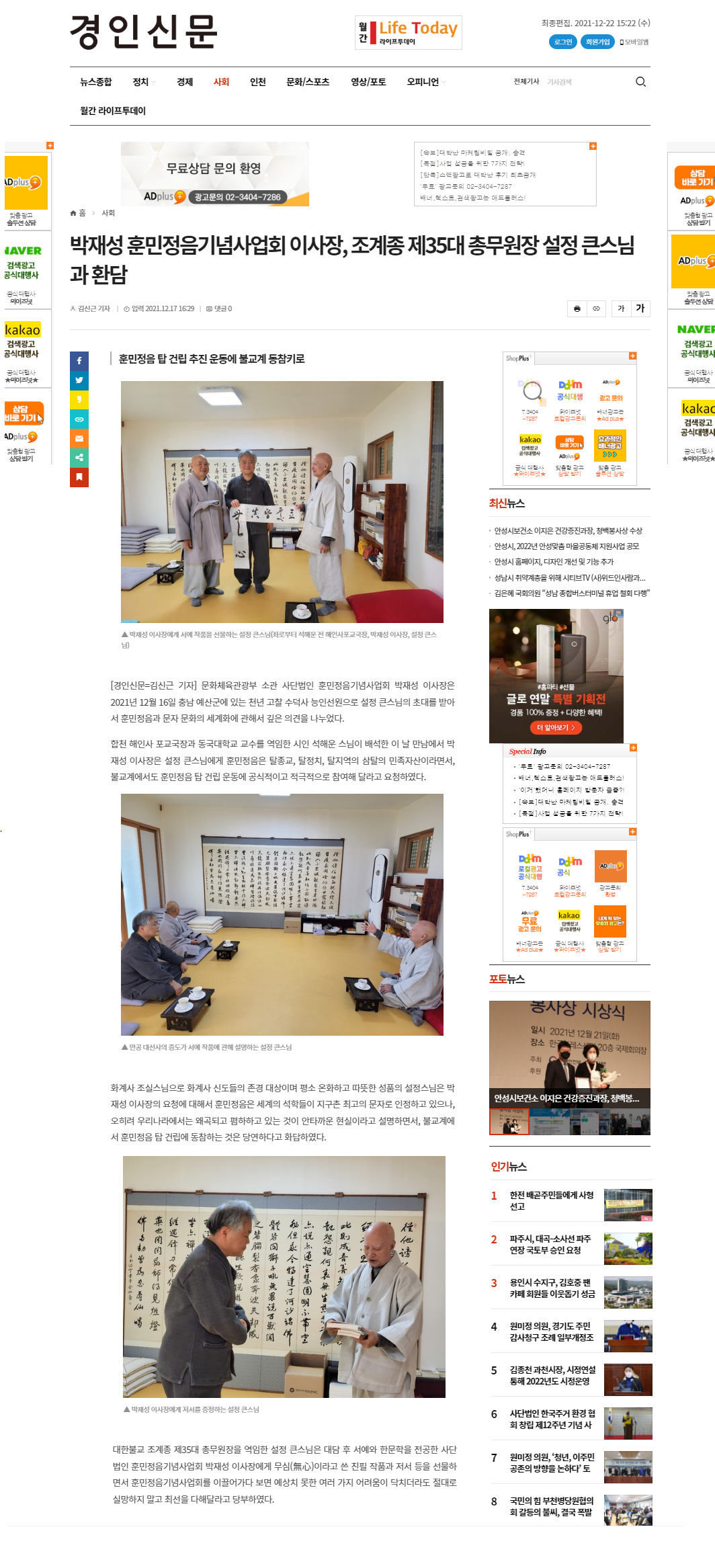 [경인신문] 조계종 제35대 총무원장 설정 큰스님 환담