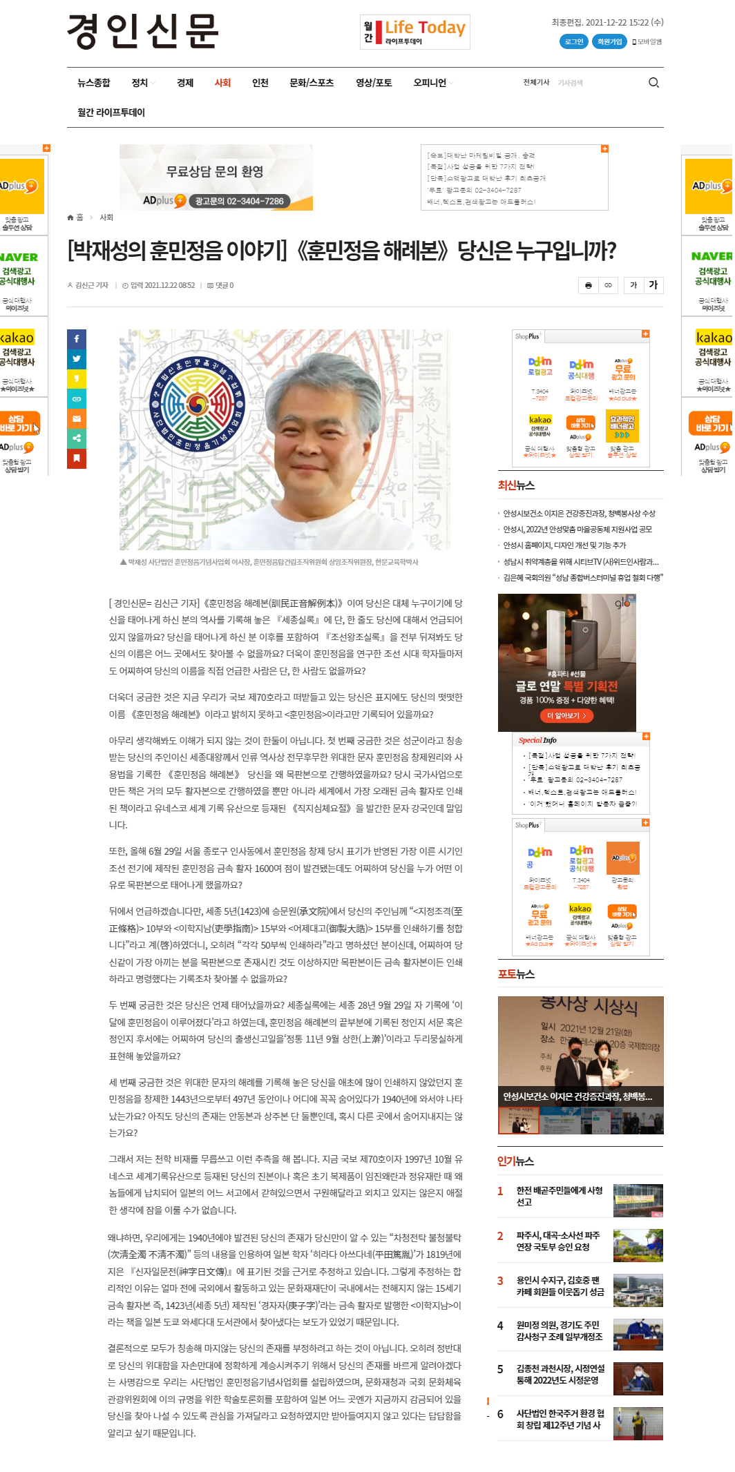 [경인신문] 훈민정음해례본 당신은 누구입니까?