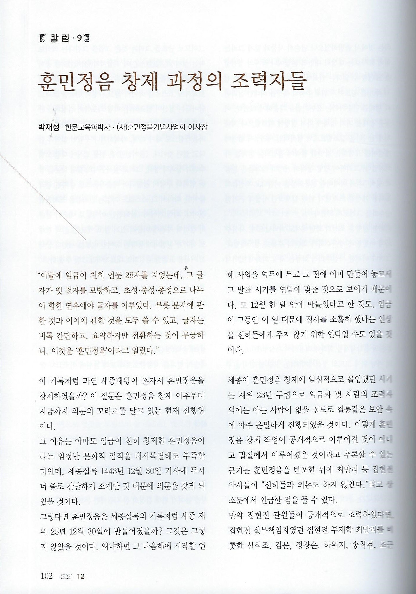 [월간서예문인화] 훈민정음창제과정의 조력자들