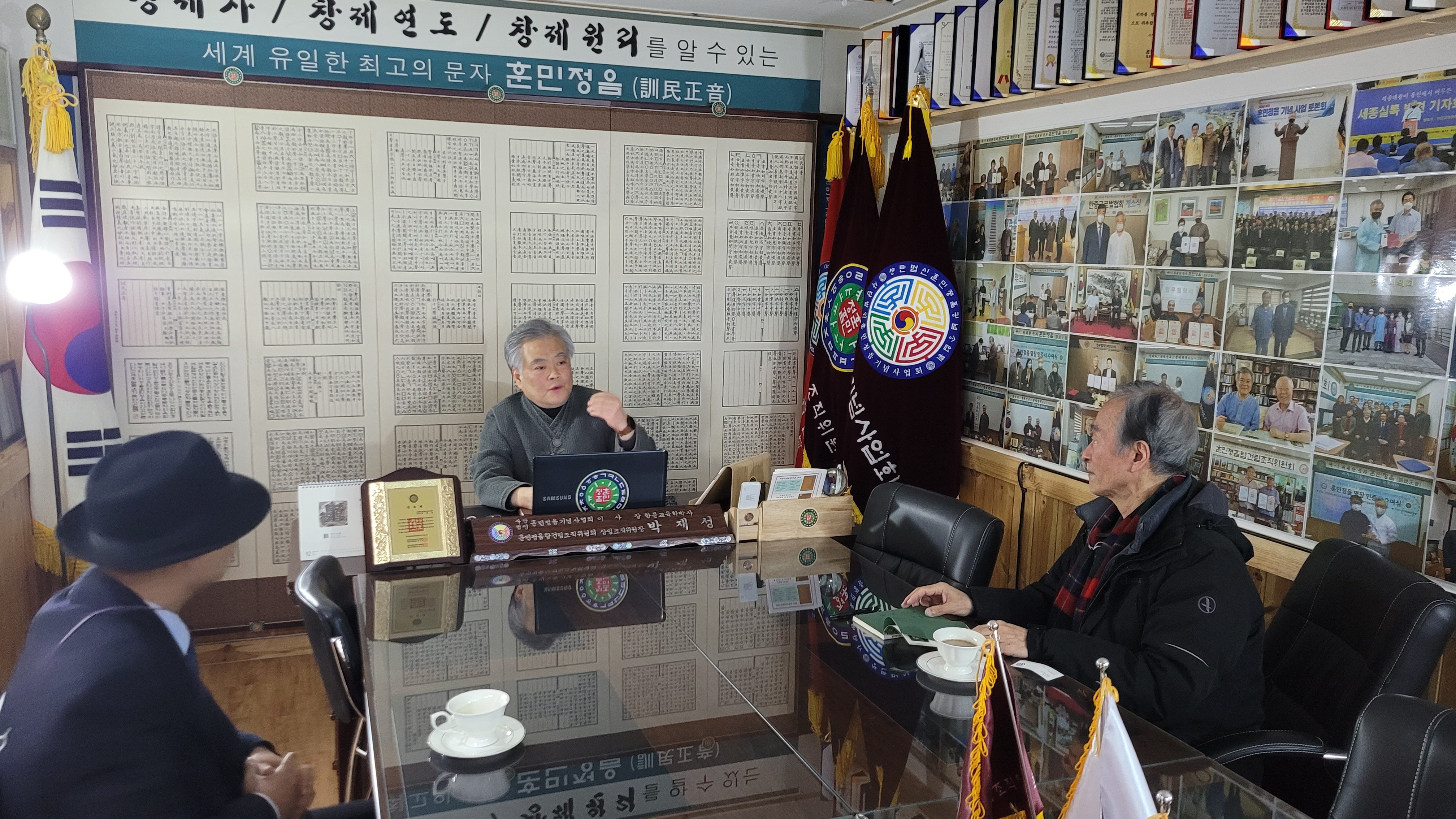 이에 박 이사장은 즉석에서 이상면 박사에게 고문 위촉장을 수여한 뒤 훈민정음 뱃지를 달아주고 약 2시간여 동안 환담을 하였다.<이금로 사무처장>