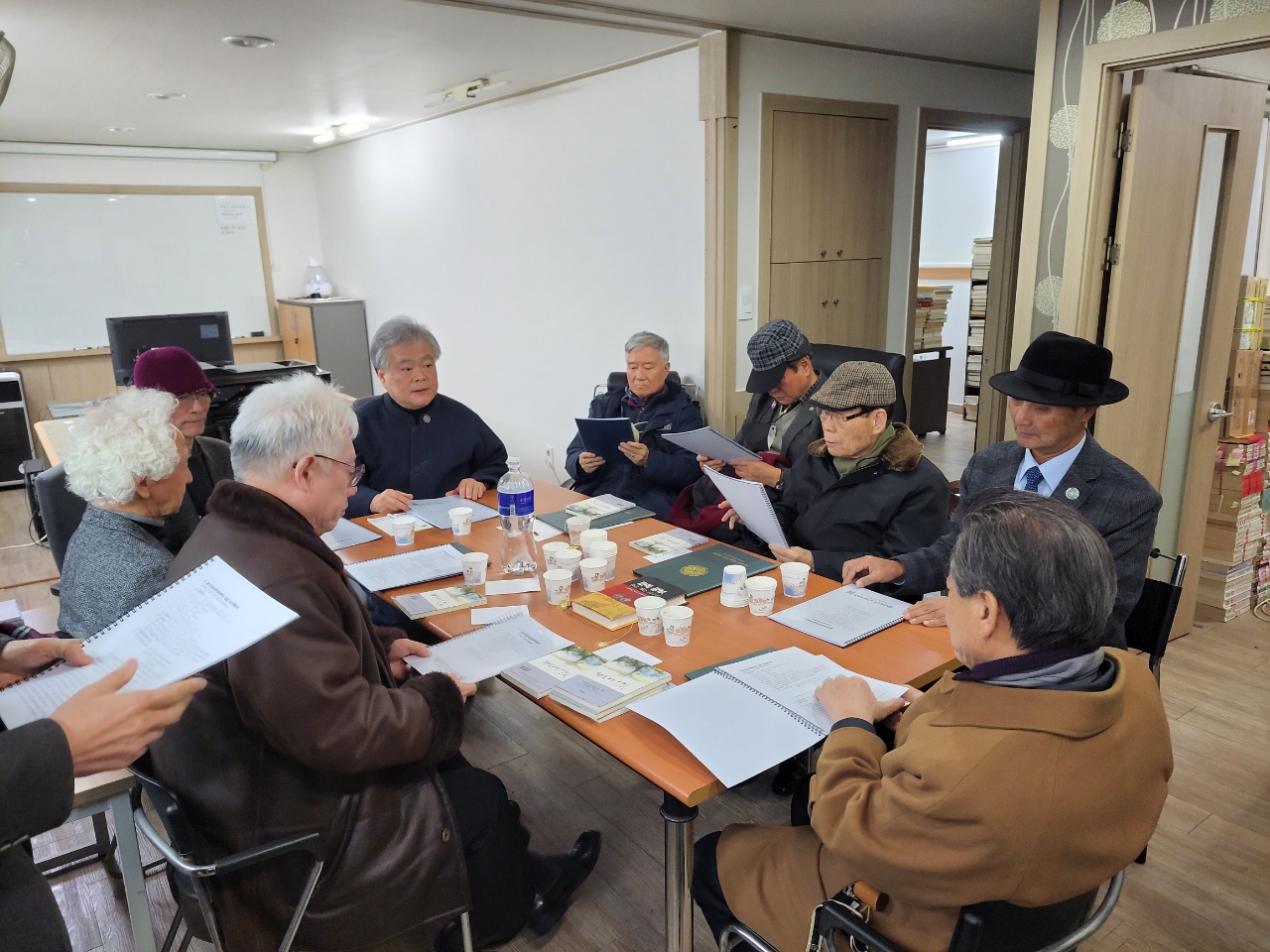 이날 회의에 참석한 사람은 사진 왼쪽으로부터 이금로 사무처장, 김동연 국전서예심사위원장, 윤석기미군 8군단장 비서실장, 심광언 둑도살리기국민운동본부 총재, 이상면 서울법대 명예교수, 박재성, 나기정 전 청주시장, 김용해 전 국정원 제2차장, 신방웅 전 충북대 총장, 권이종 한국교원대학교 명예교수, 김동영 서울경기행정신문 발행인, 이동주 전 청주시 도시건설국장, 장영환 서울경기행정신문 위원장이다.
