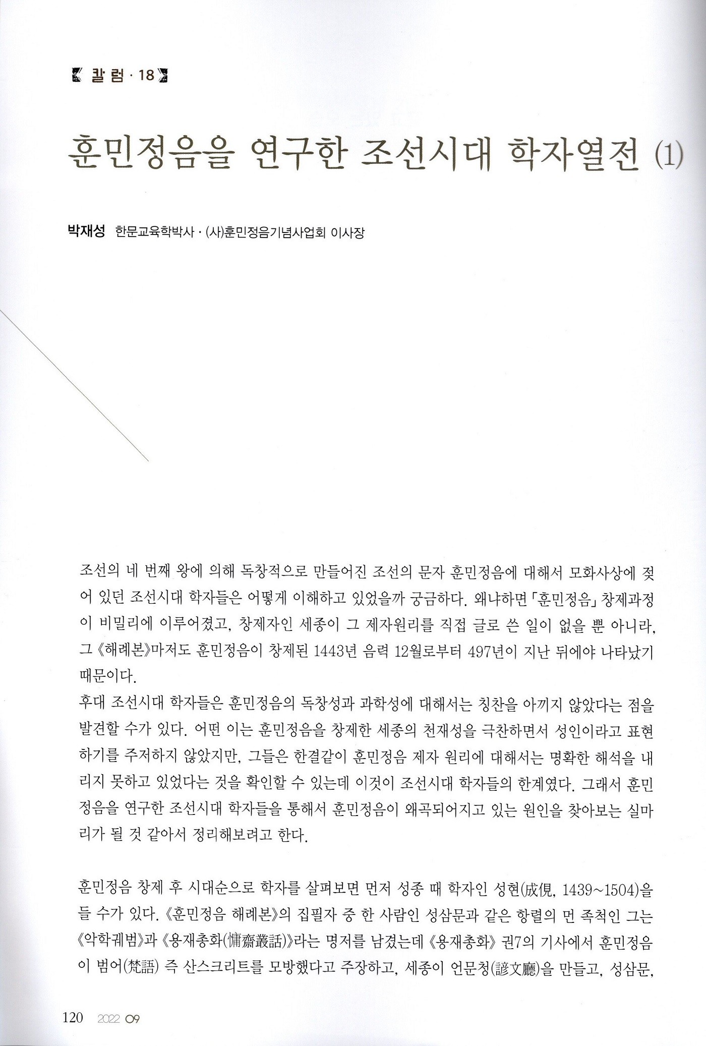 [칼럼17] 훈민정음 해례본 당신은 누구입니까?