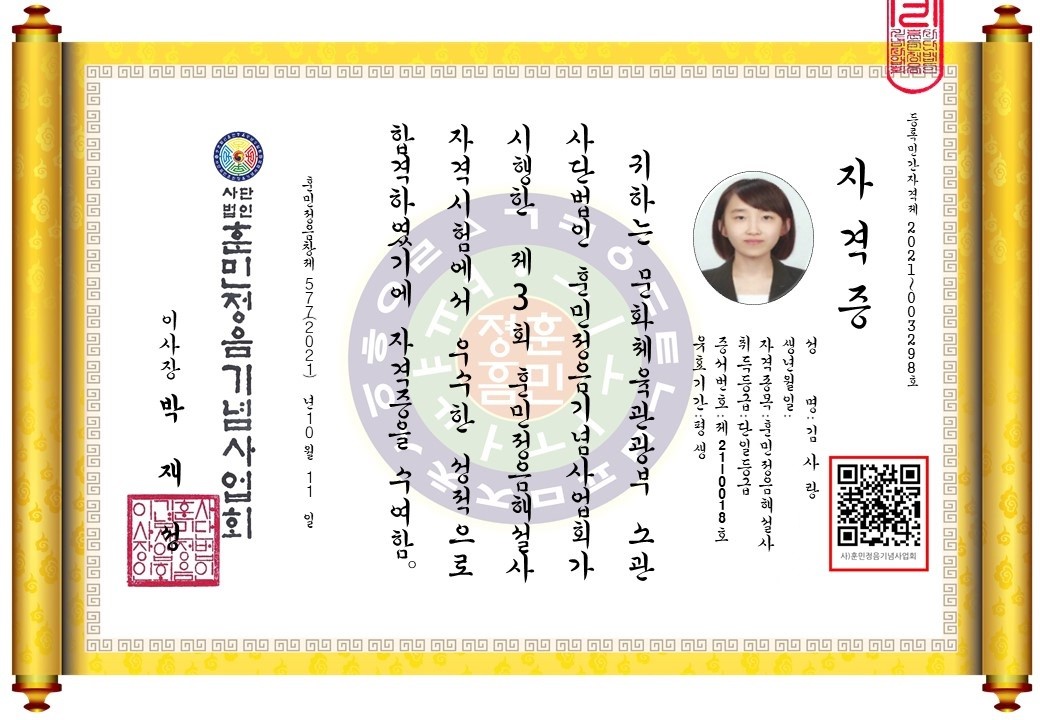 김사랑 제18호 훈민정음 해설사