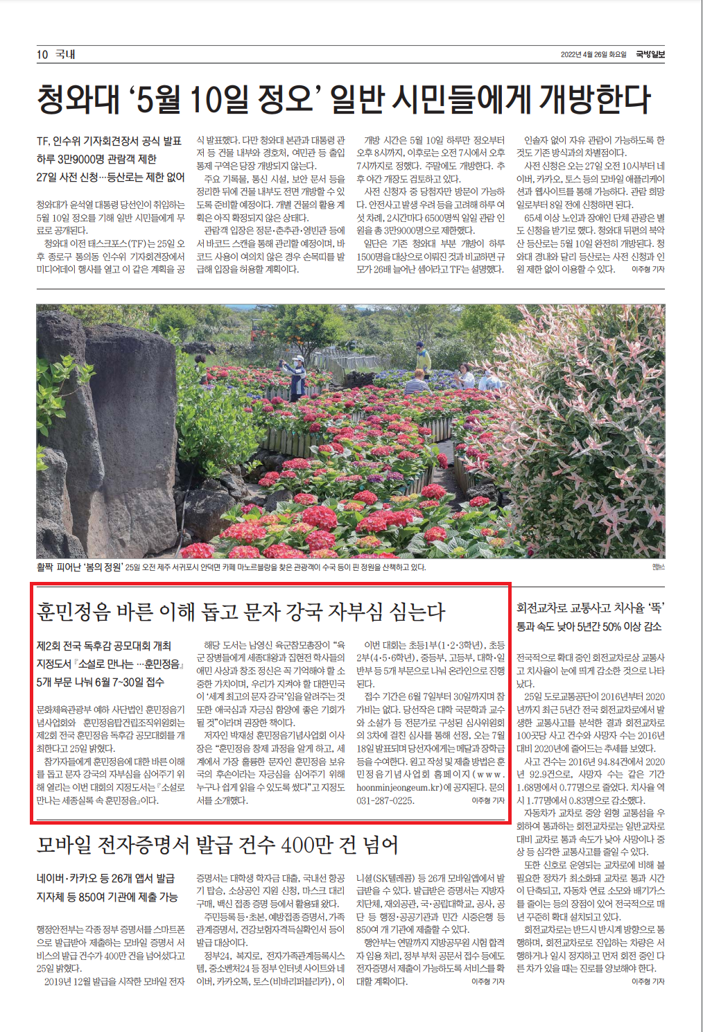 [국방일보] 훈민정음 바른 이해 돕고 문자 강국 자부심 심는다