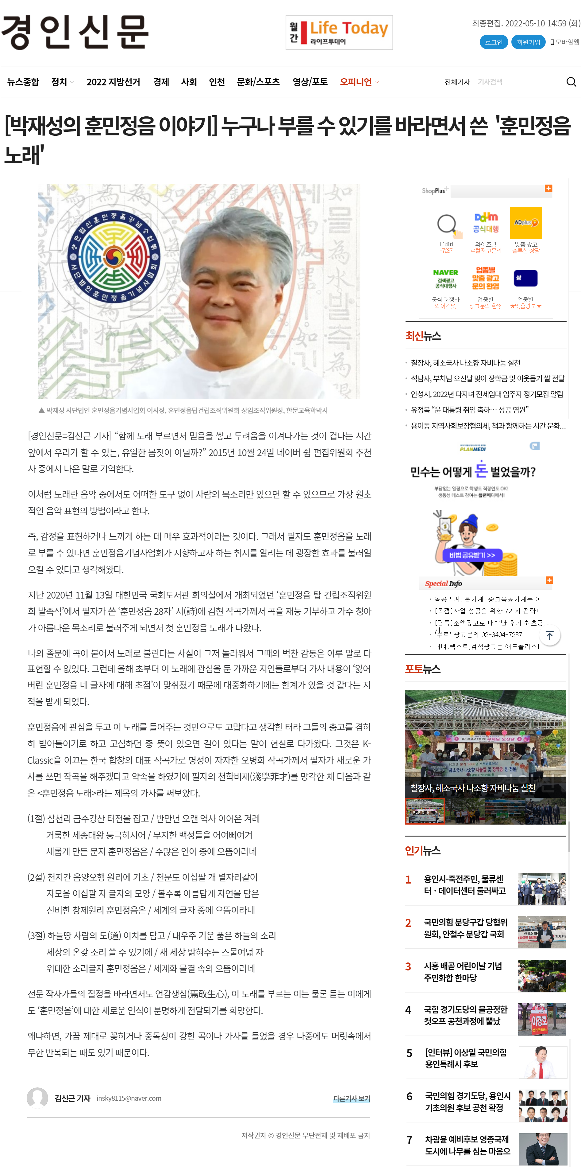 훈민정음 경산 칼럼