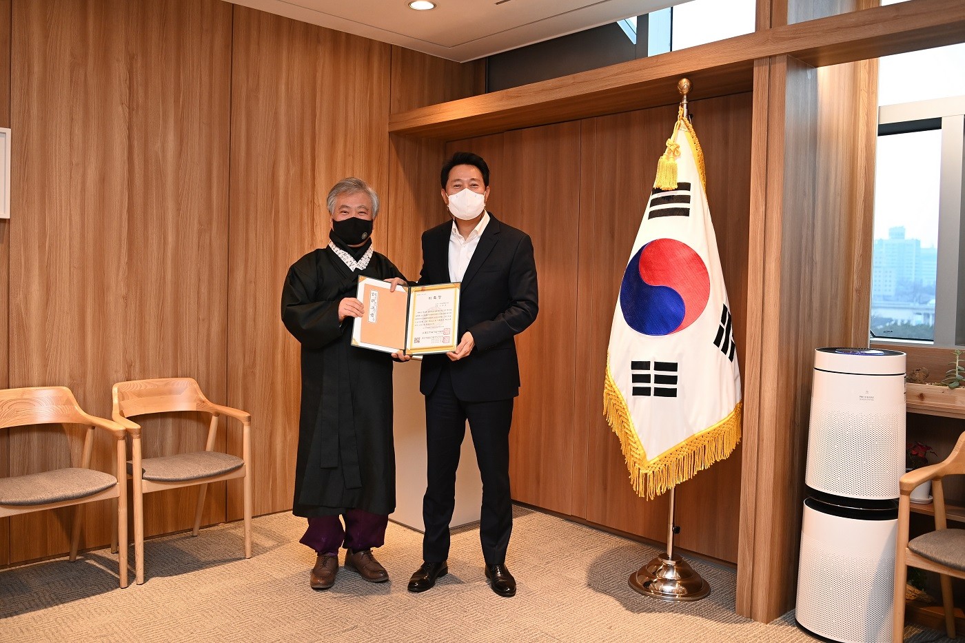 오세훈 서울특별시장이 사단법인 훈민정음기념사업회 고문으로 위촉됐다.