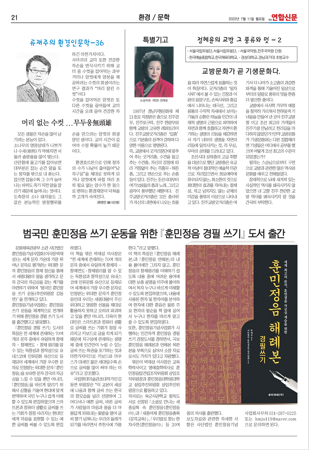 [경남연합신문] 훈민정음 경필쓰기 도서 출간
