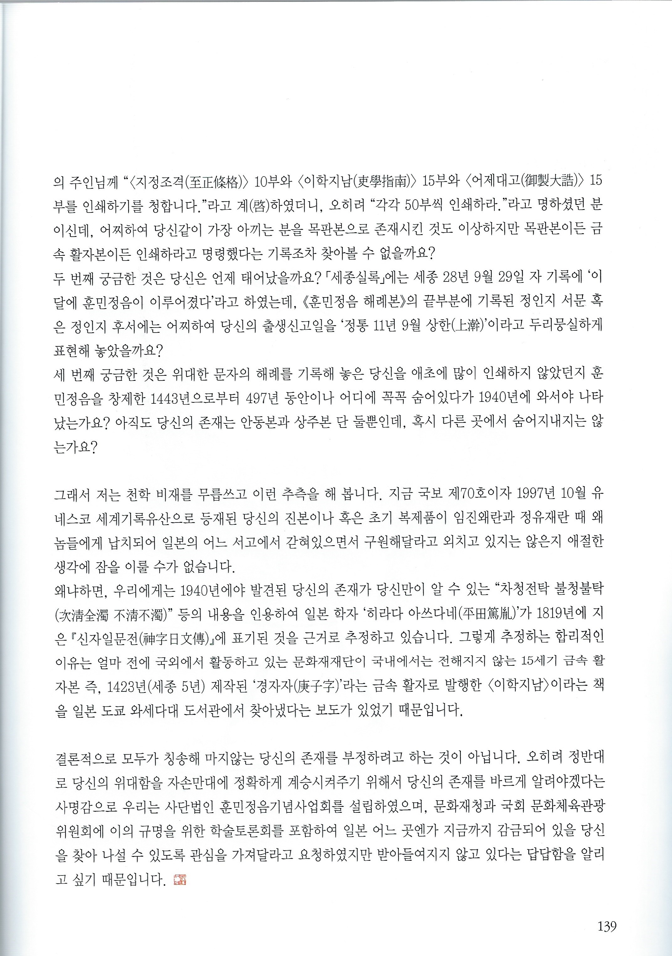 [경기데일리] 훈민정음탑 하나 없는 부끄러운 민족