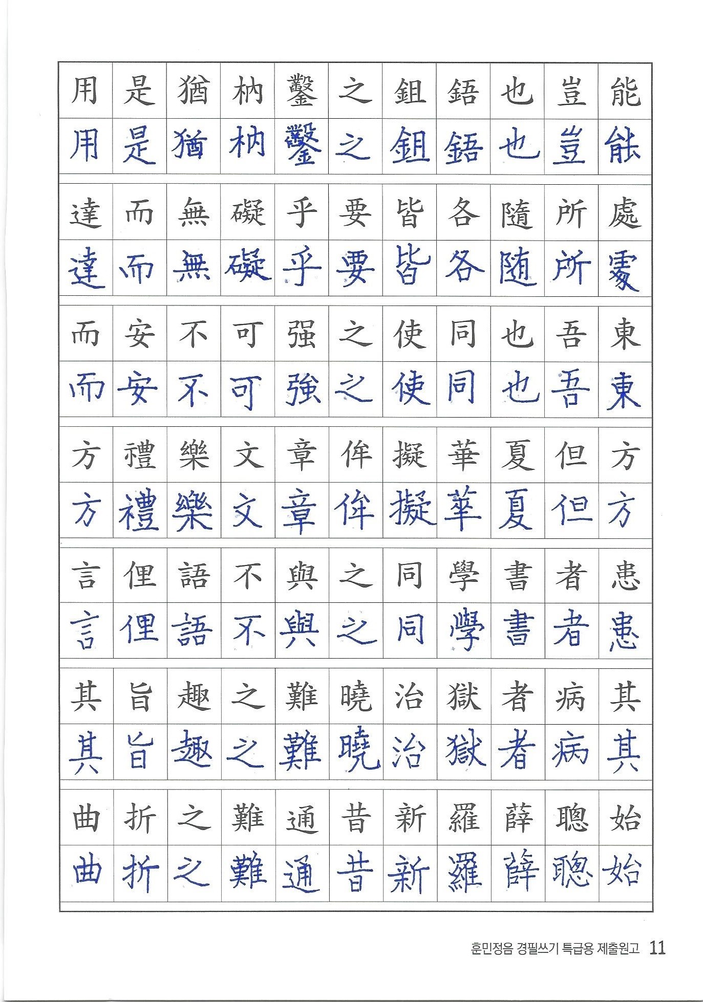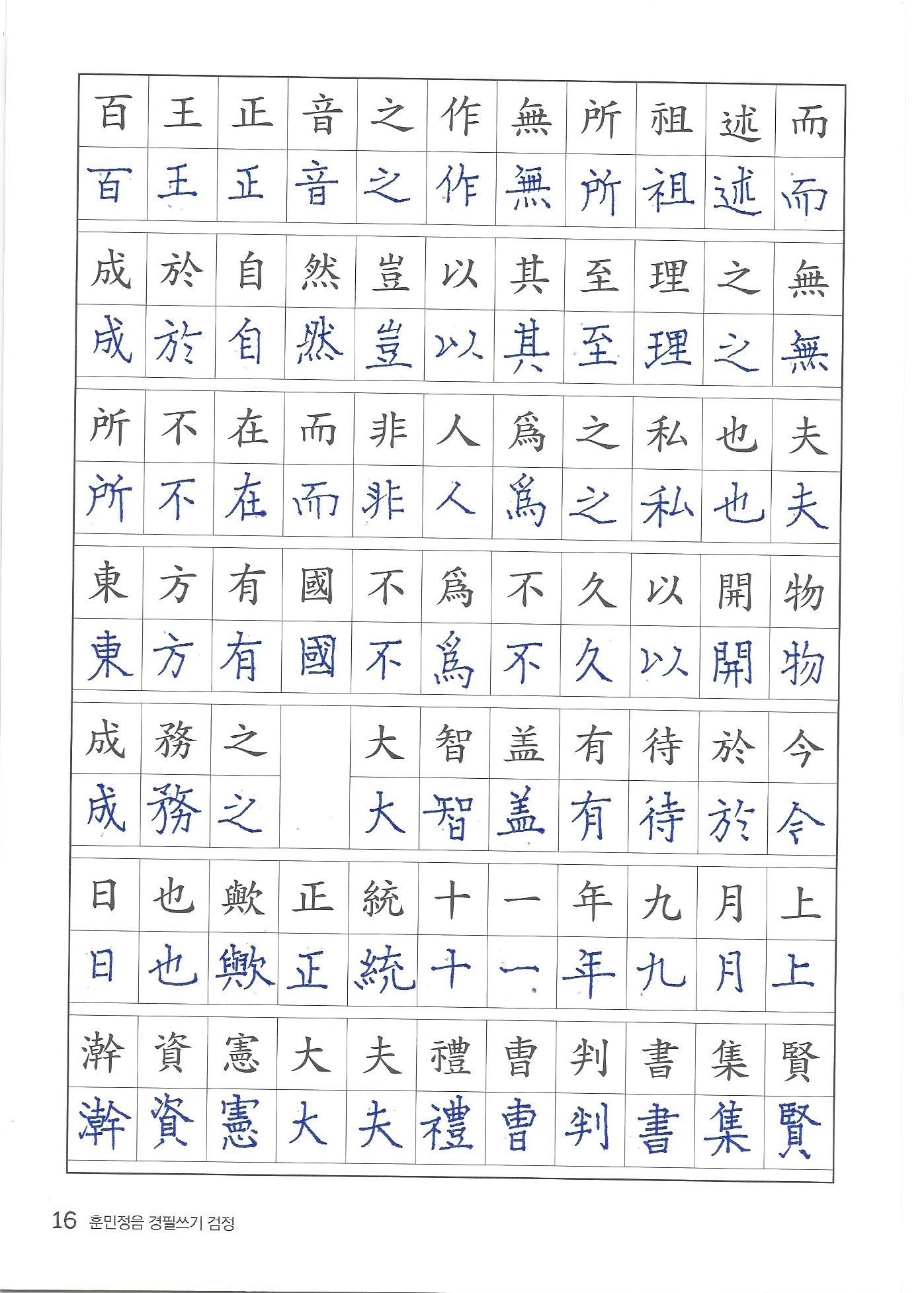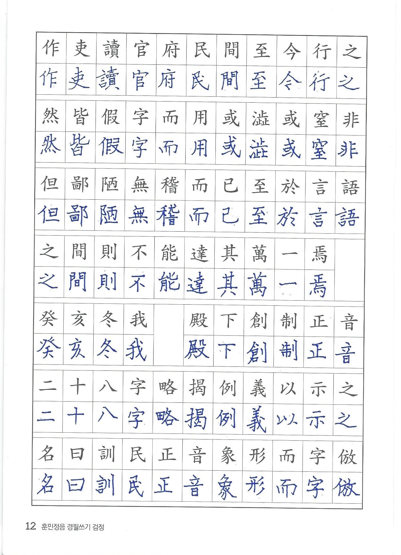 훈민정음 경필쓰기 검정