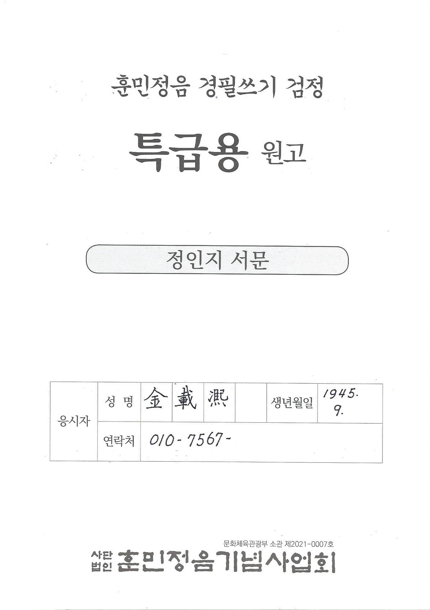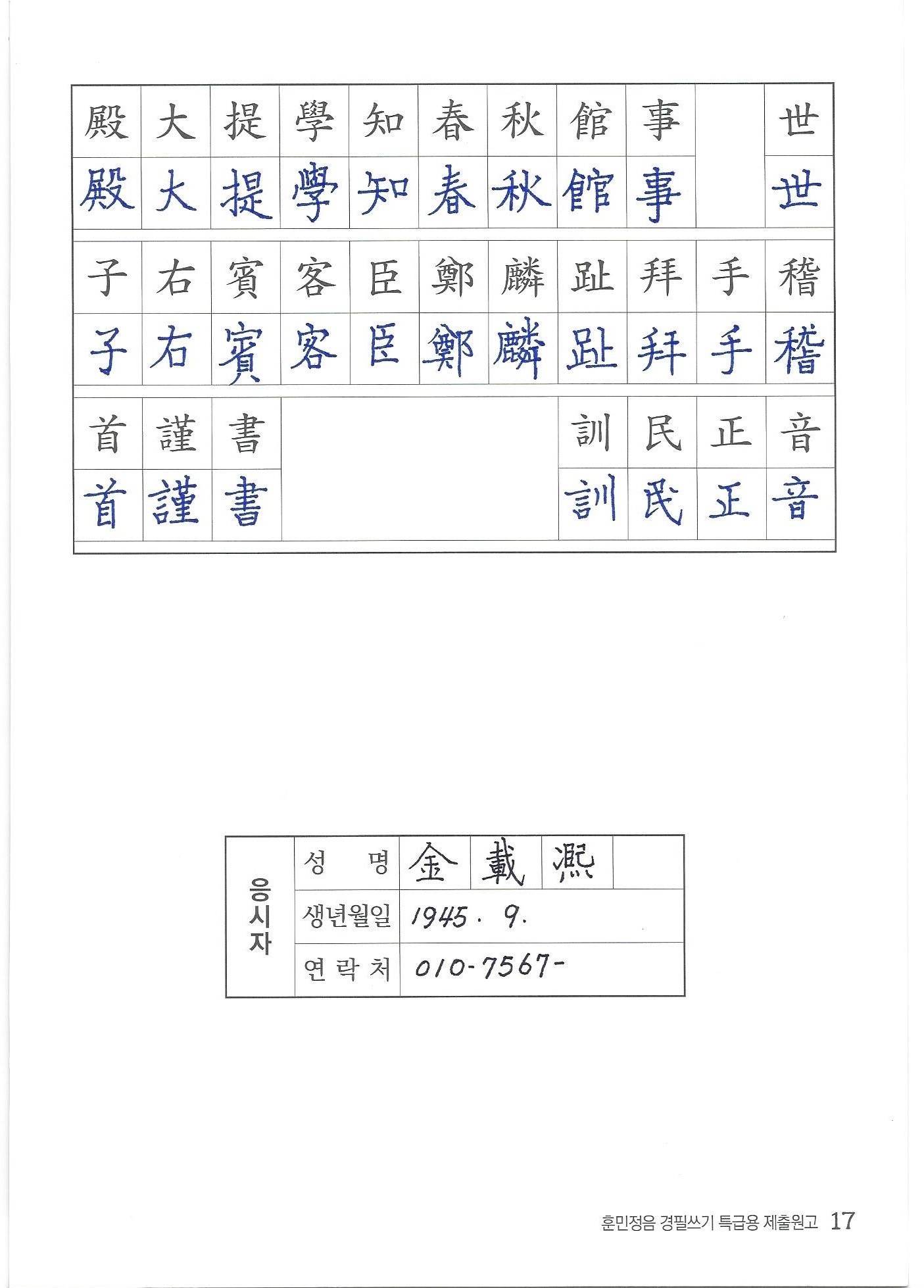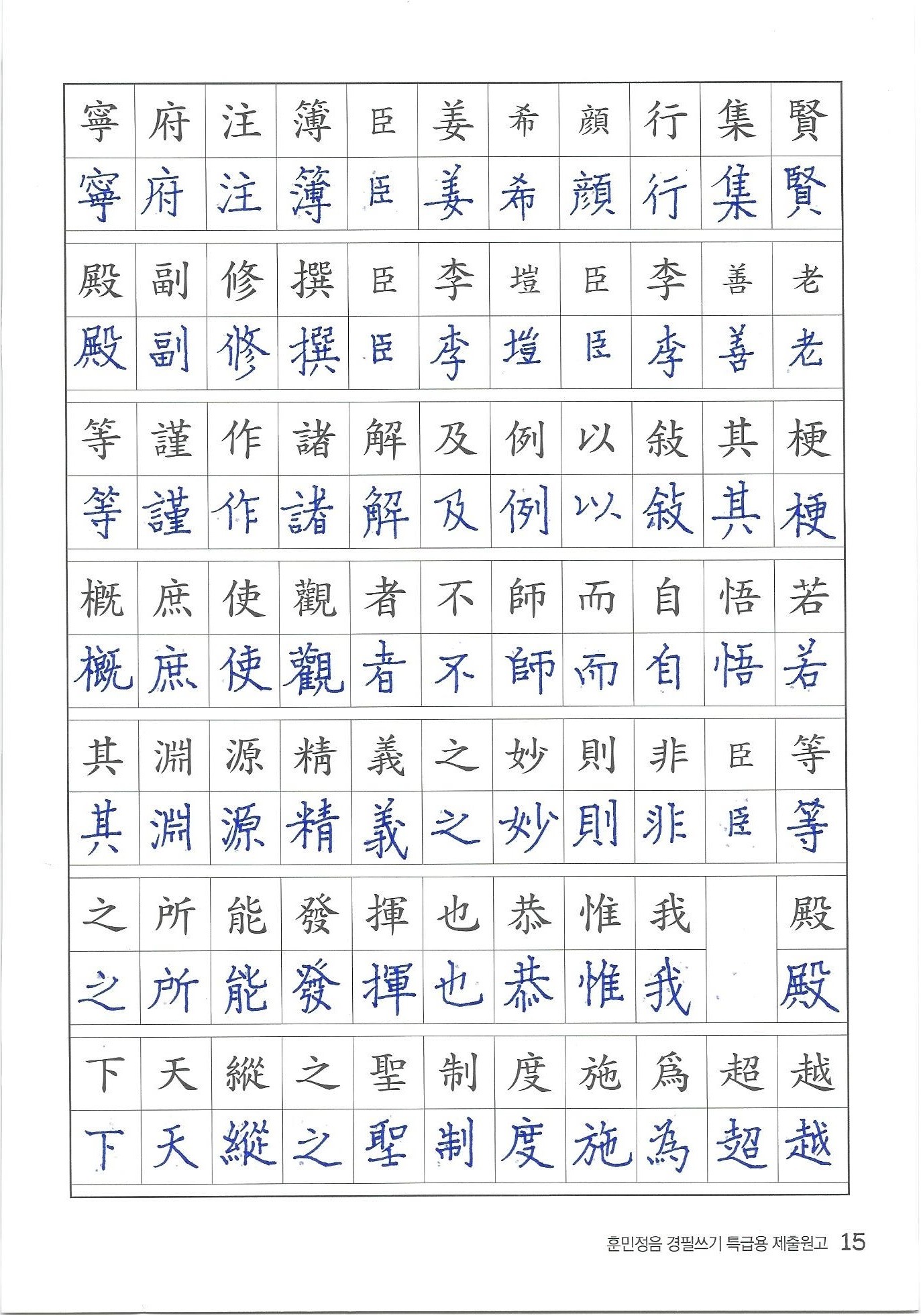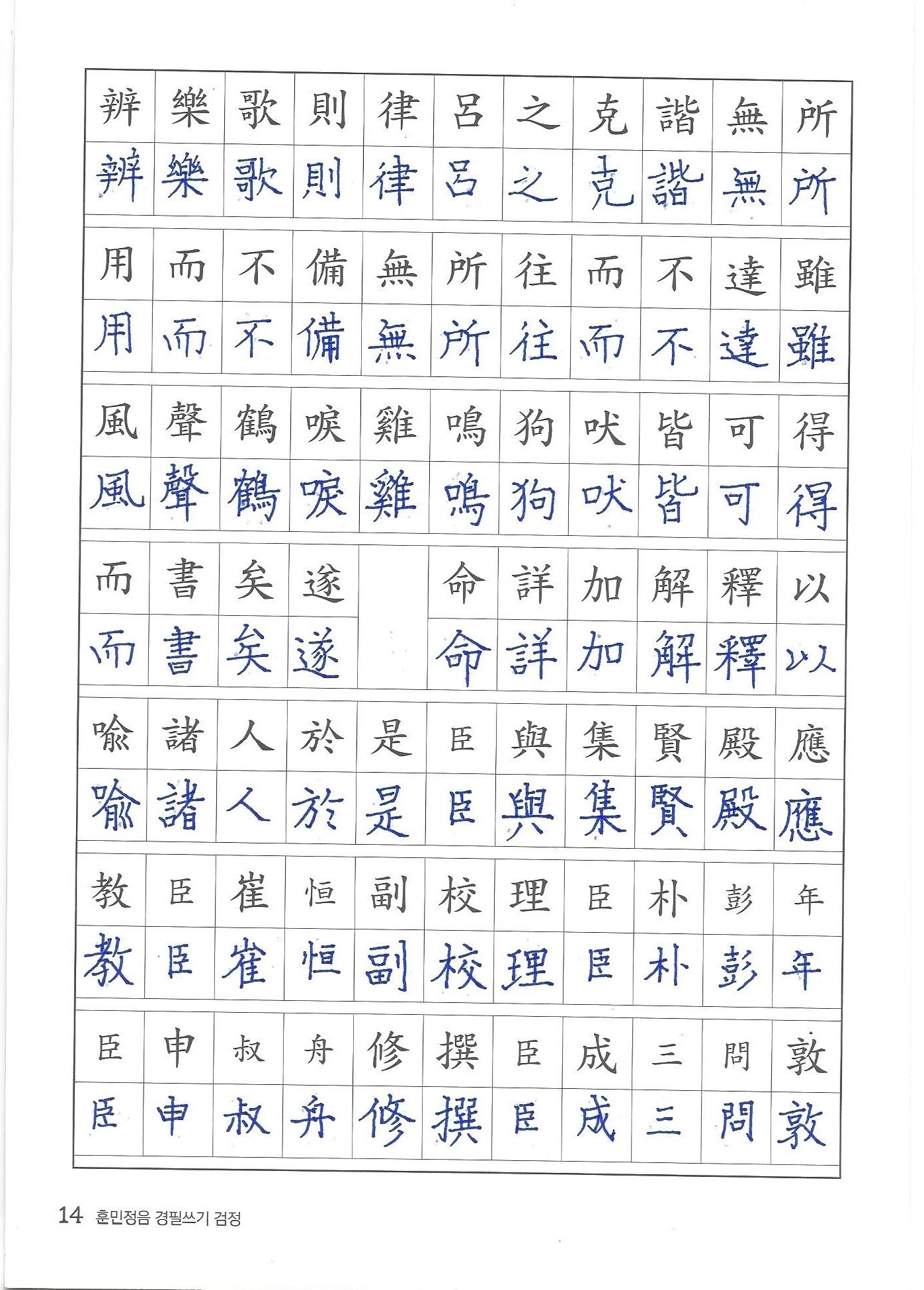 훈민정음 경필쓰기 검정
