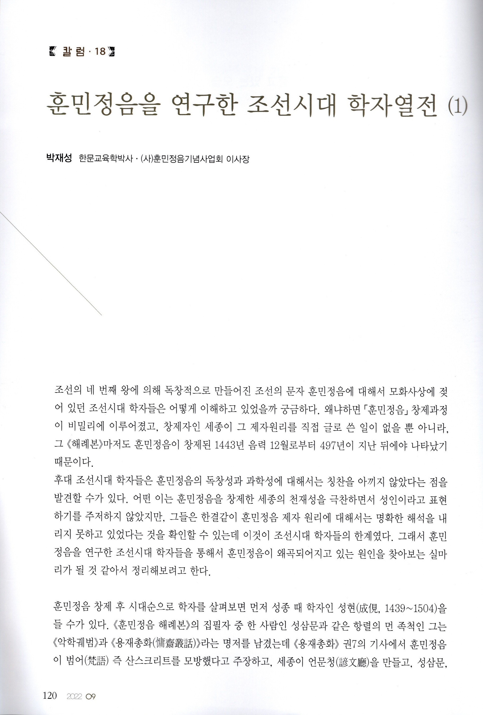 [월간서예문인화] 훈민정음을 연구한 조선시대 학자열전(1)