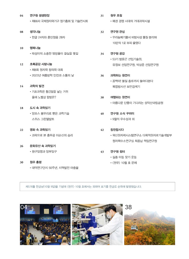 한국원자력연구원 사보<원우>10월호 '한글24자와 훈민정음 28자