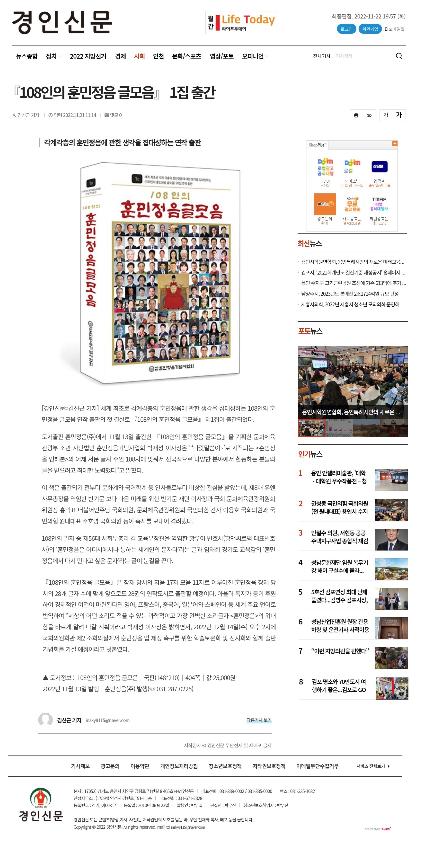 [경인신문]108인의 훈민정음 글모음 1집 출간