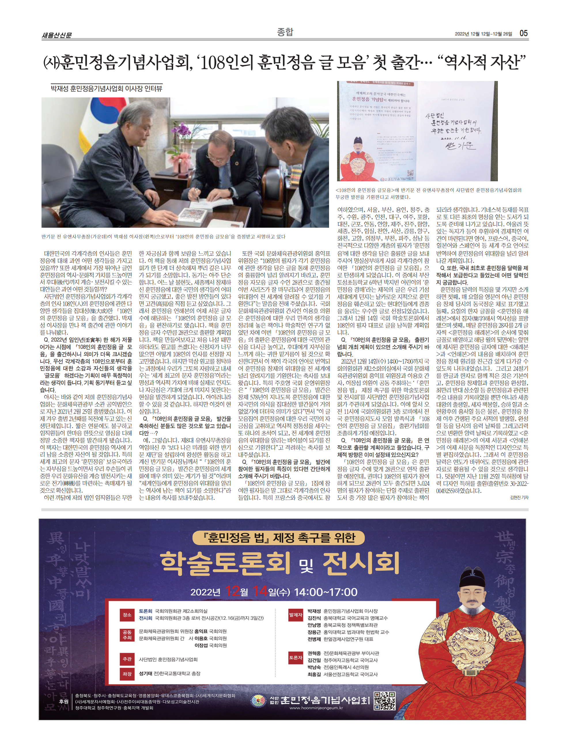 [새용산신문] '108인의 훈민정음 글모음' 첫 출간 - 역사적 자산