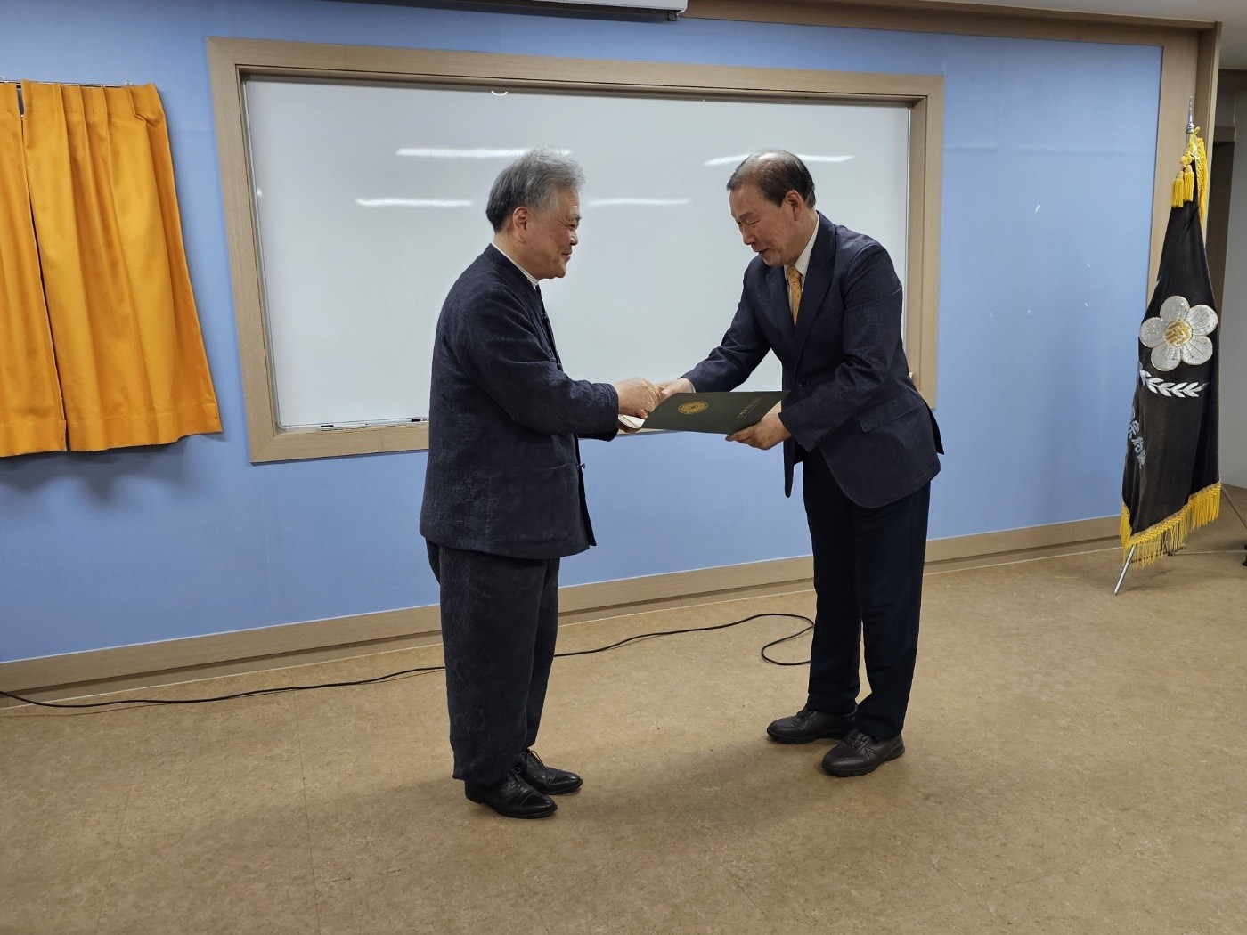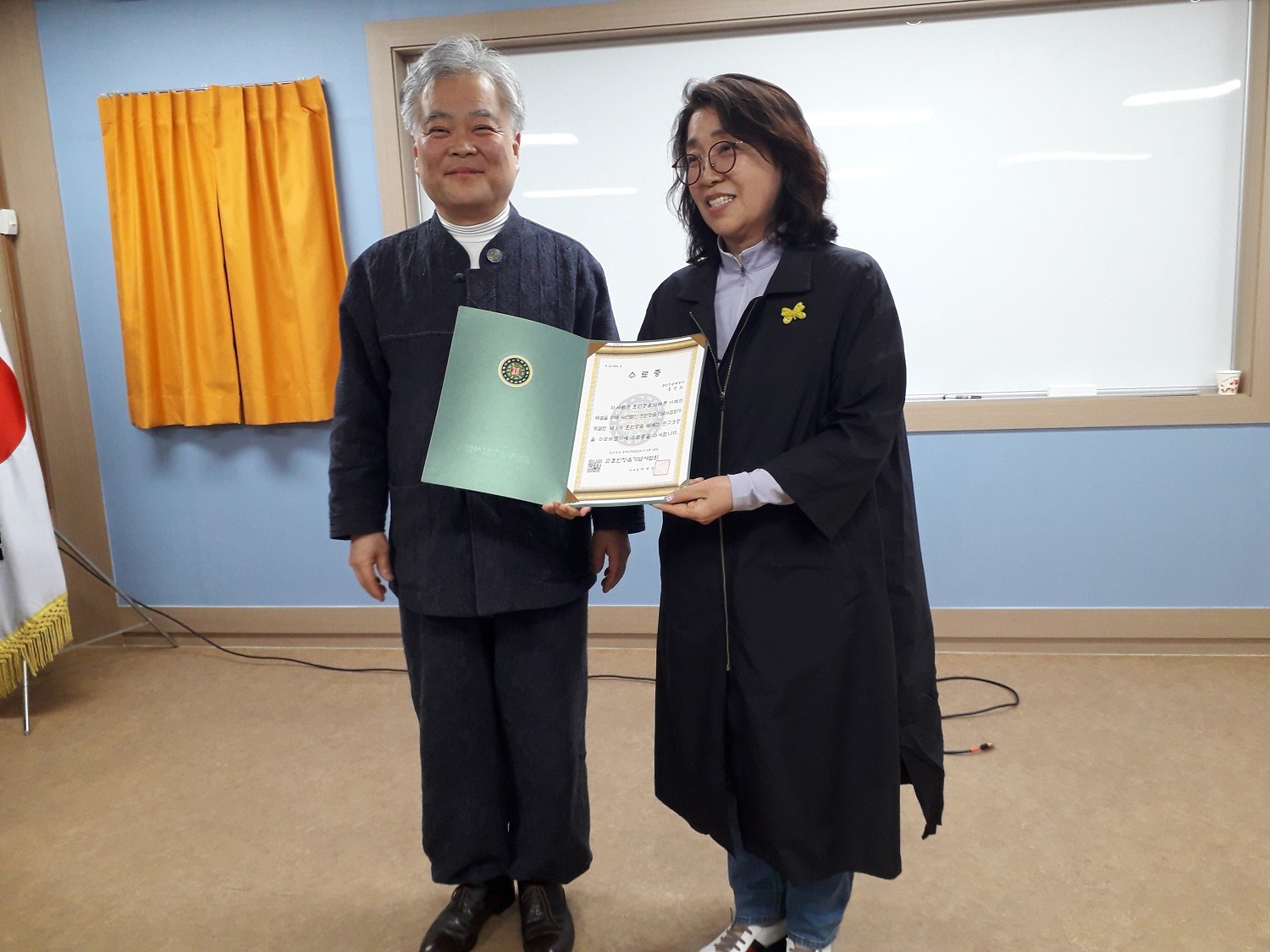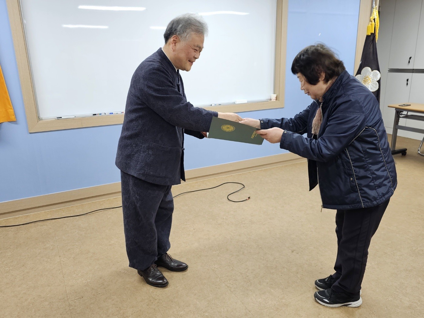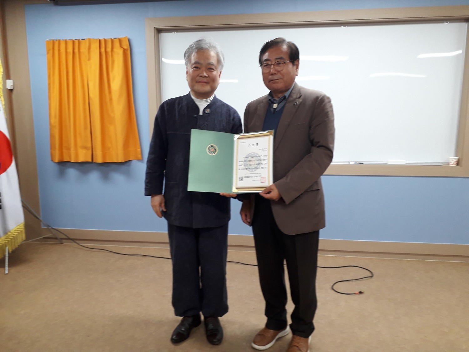 제1기 훈민정음 해례본 연구과정 수료생들 좌로부터 이명희, 김전원, 전영찬, 홍영표, 박재성 이사장, 조민주, 김건일, 정은오, 김동인, 이종대, 이동주 훈민정음해설사