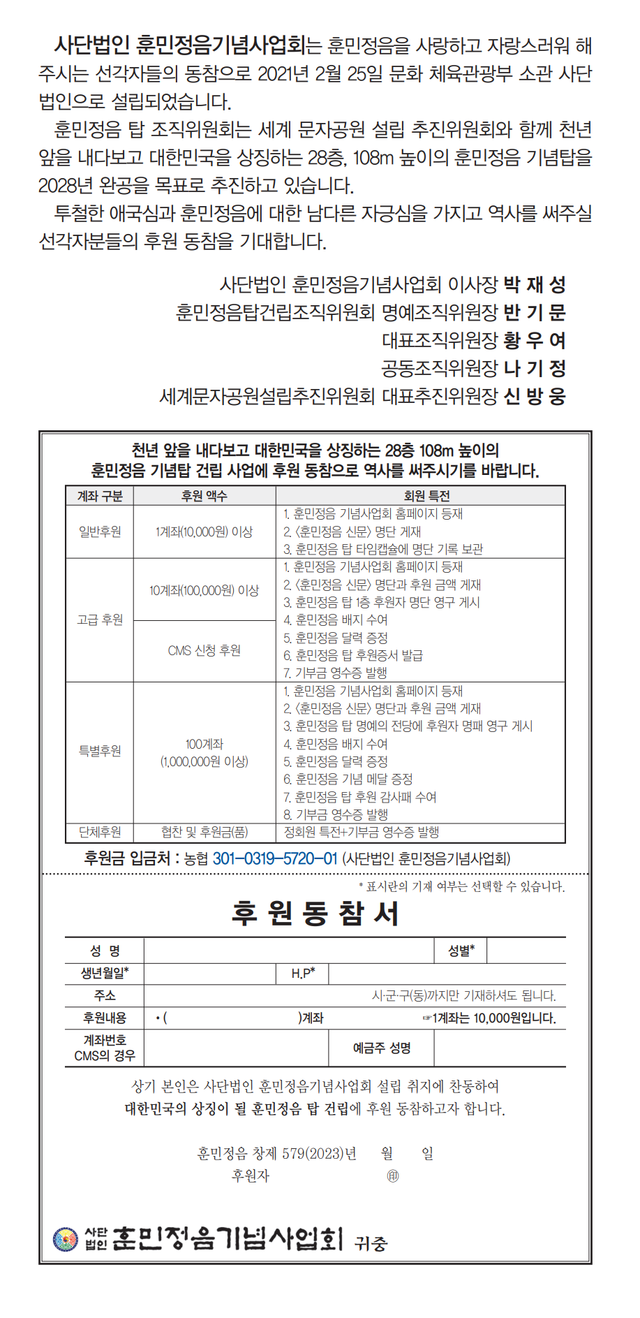 [양식17호] 훈민정음신문 학생기자 학교장 추천서