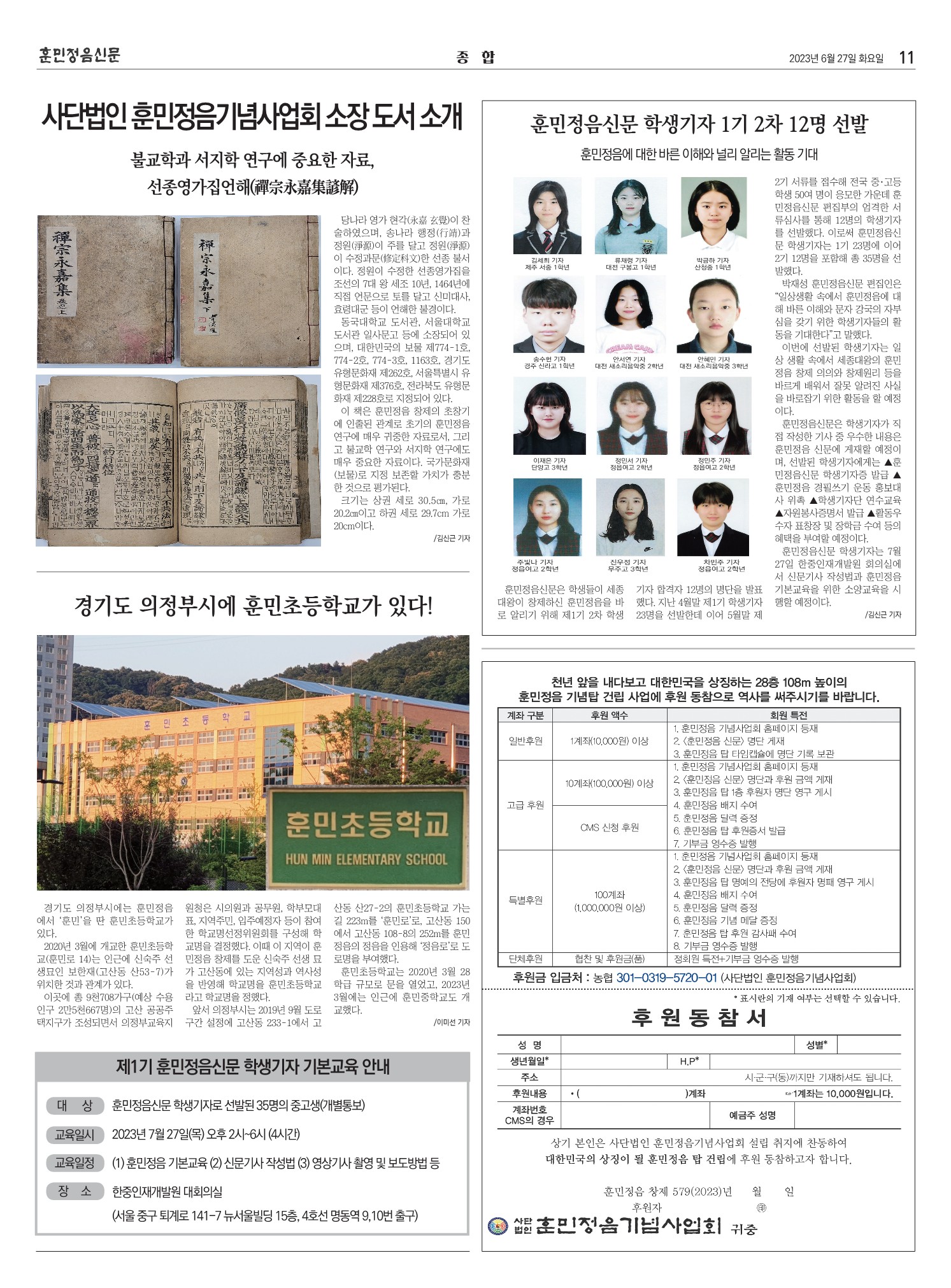 훈민정음신문 4호 발행