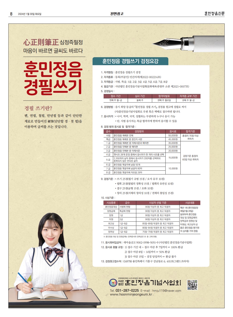 훈민정음 경필쓰기 검정 도서 전급수 완간