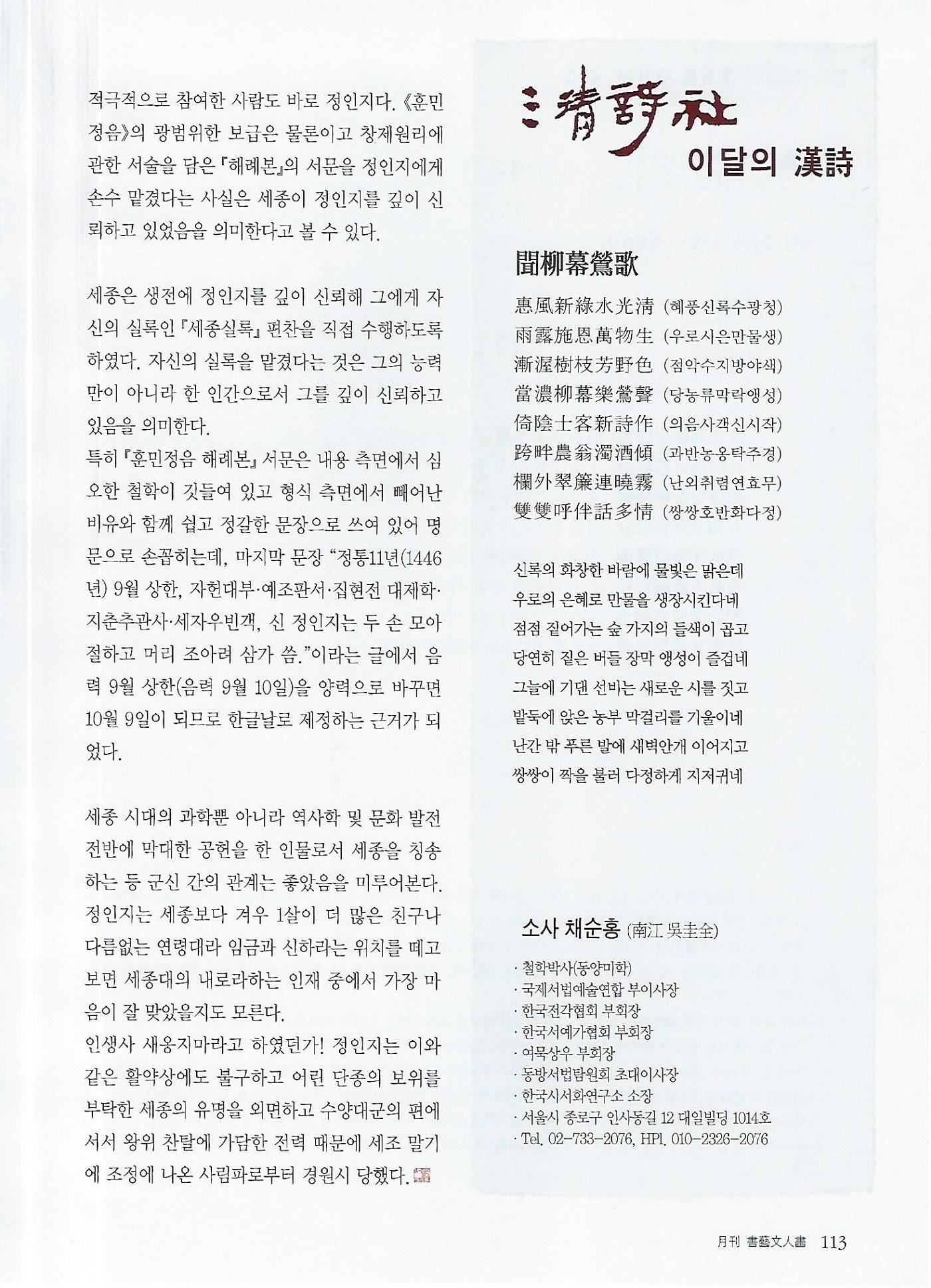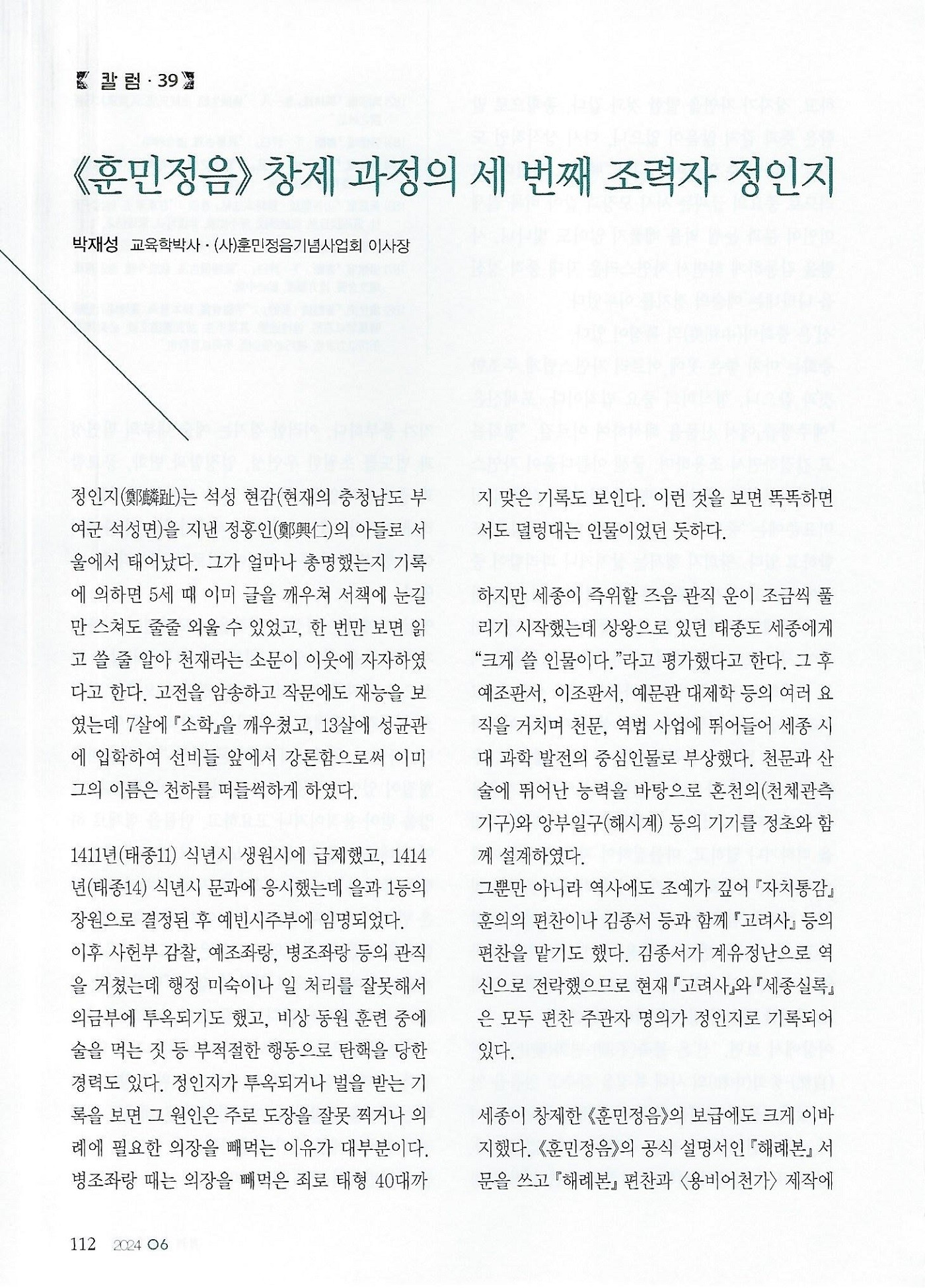 [칼럼 39] 훈민정음 창제 과정의 세 번째 조력자 정인지