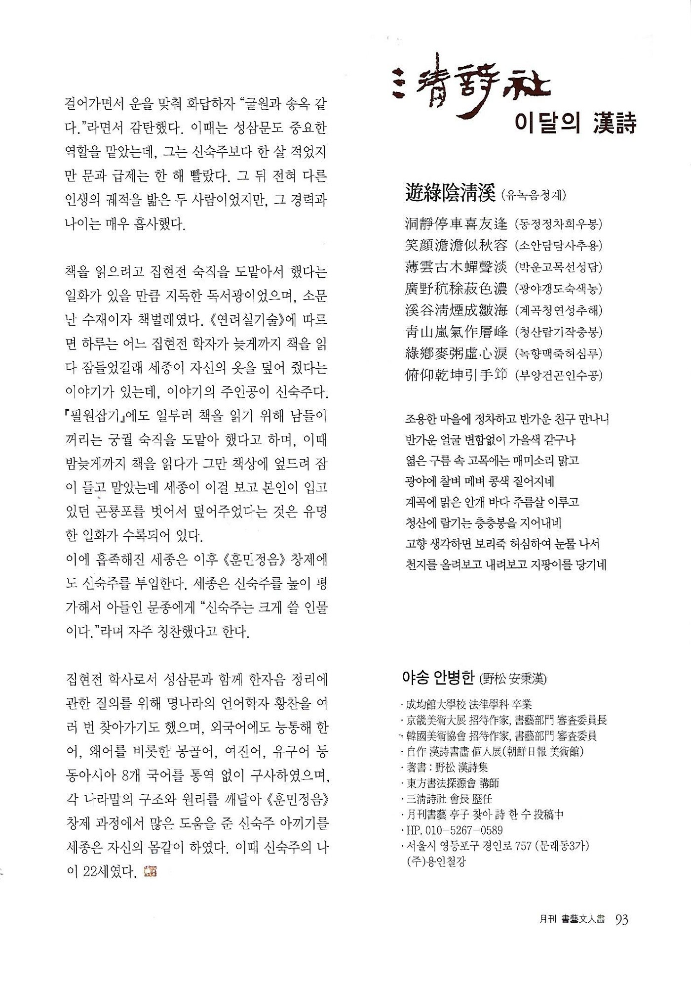 [칼럼 41] 훈민정음 창제 과정의 다섯 번째 조력자 신숙주