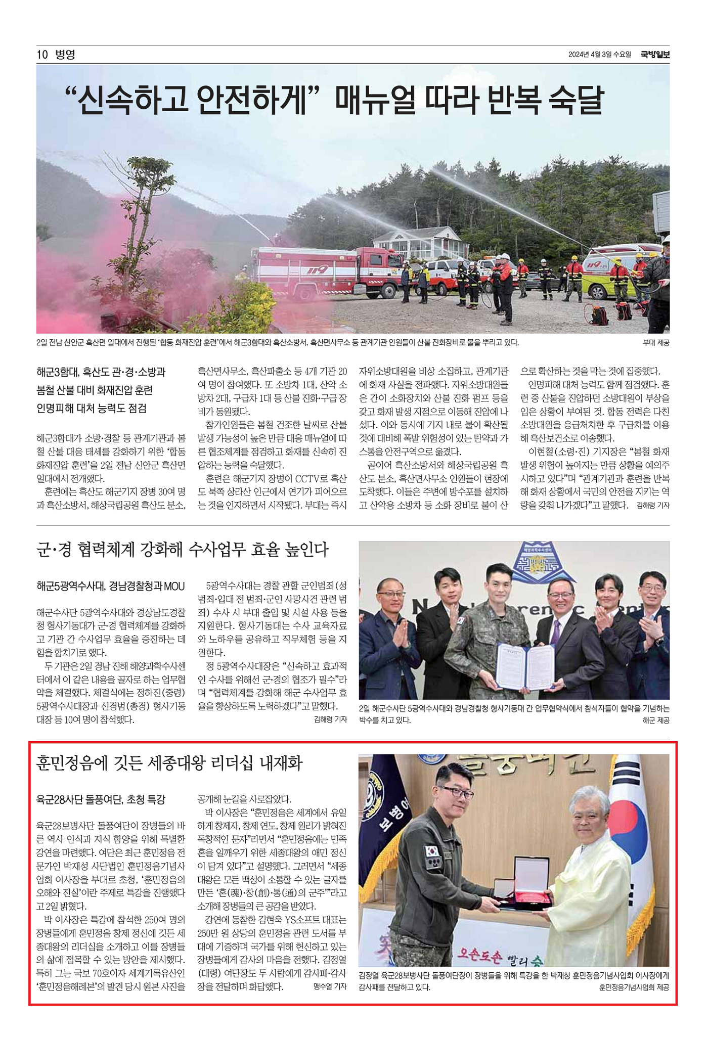 [경기남일보] 돌풍부대 용사 대상 '훈민정음 특강' 지력 단련 기여