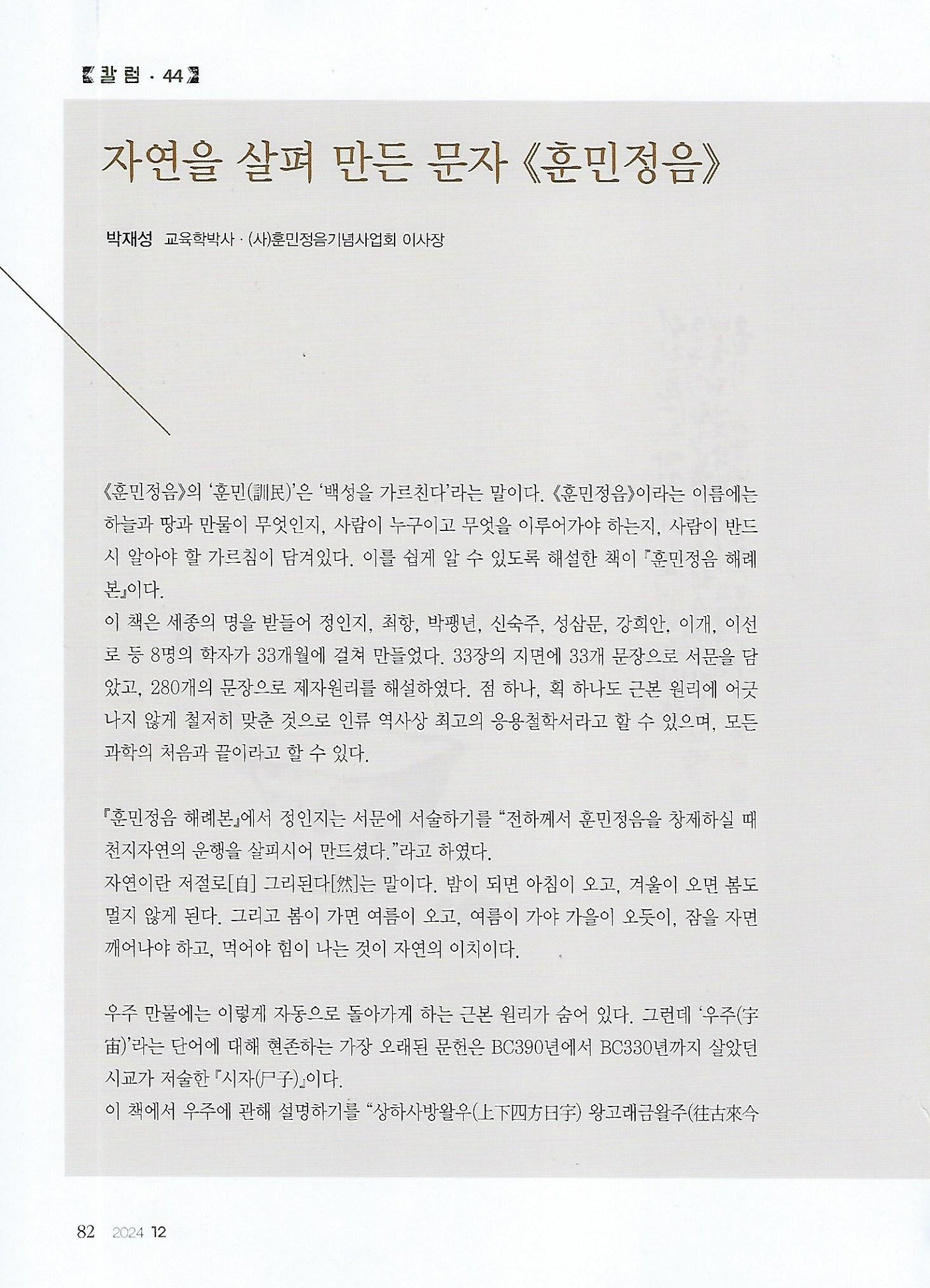 [칼럼 44] 자연을 살펴 만든 문자 <훈민정음>