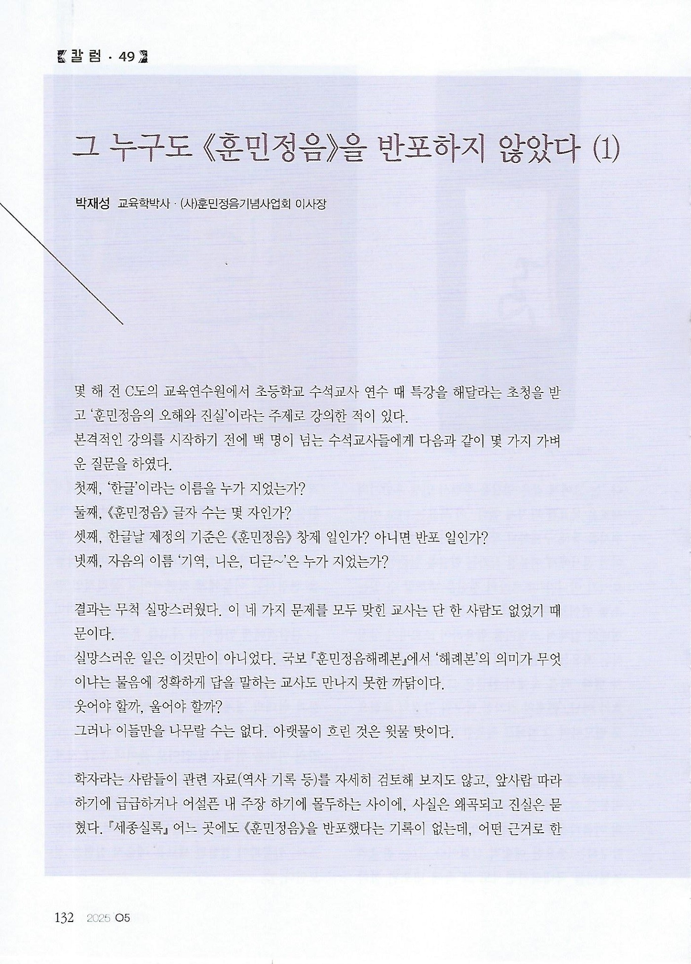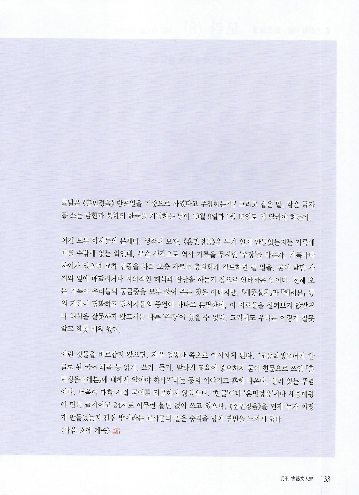 [칼럼 50] 그 누구도 <훈민정음>을 반포하지 않았다.(2)