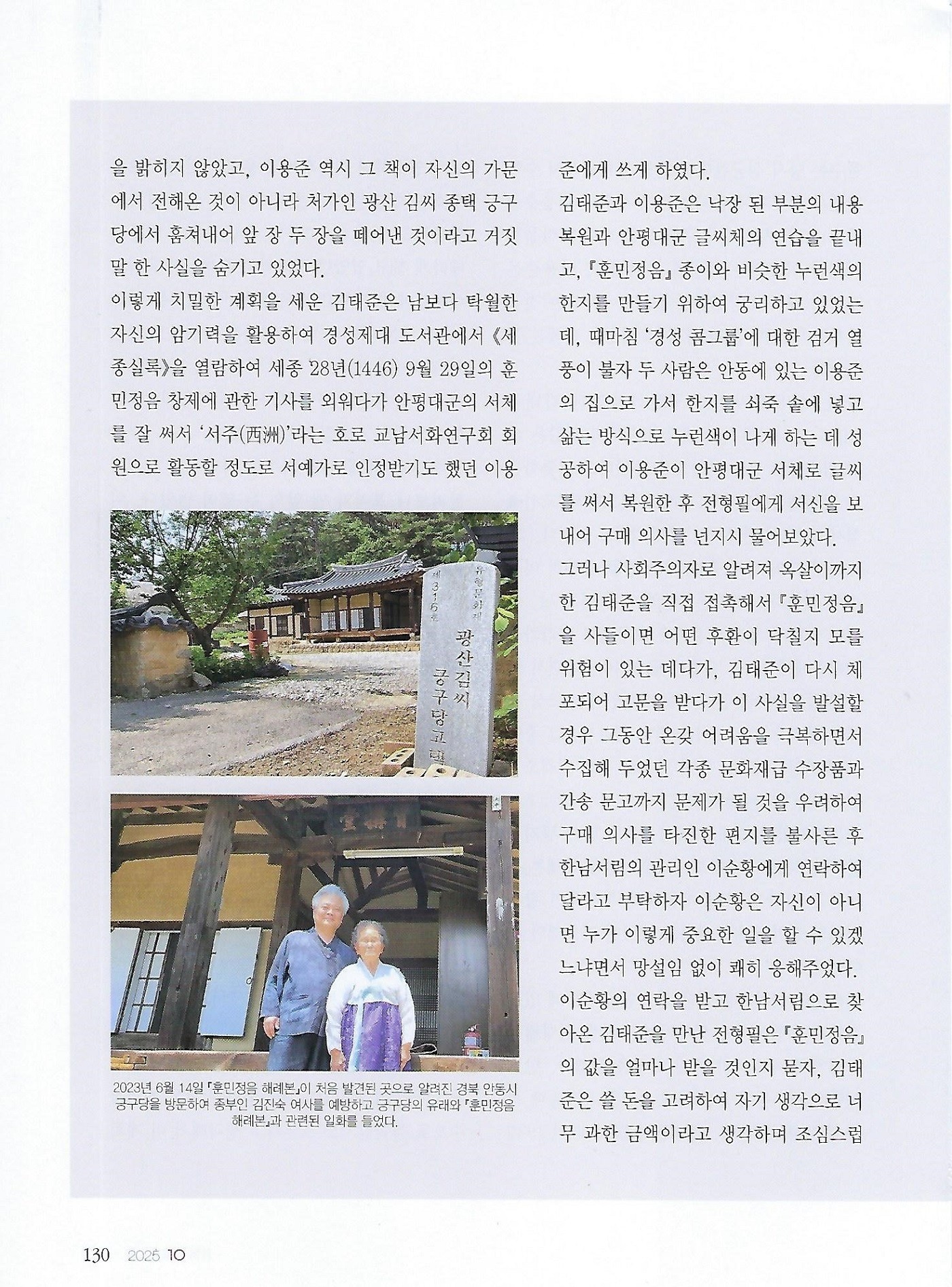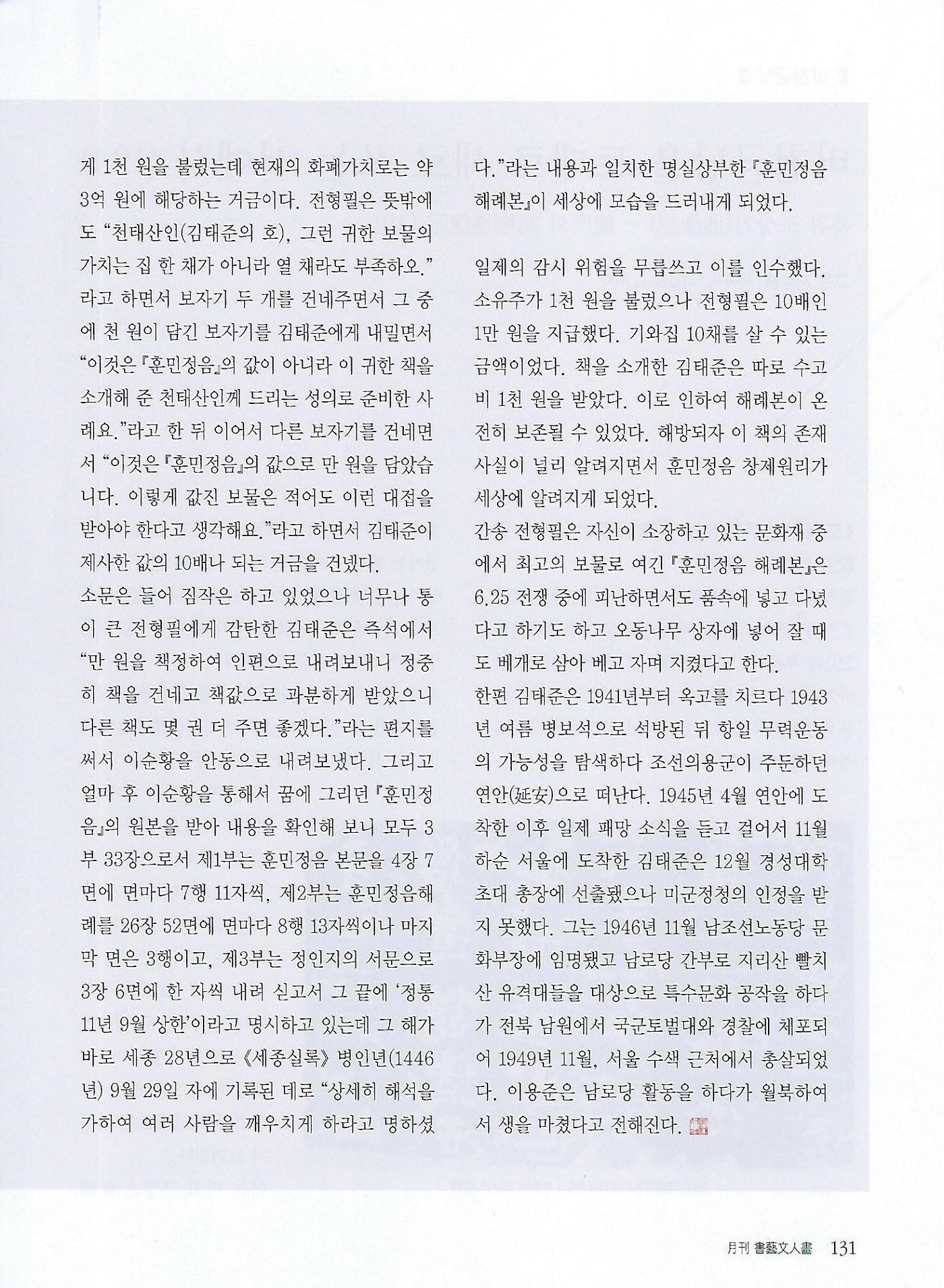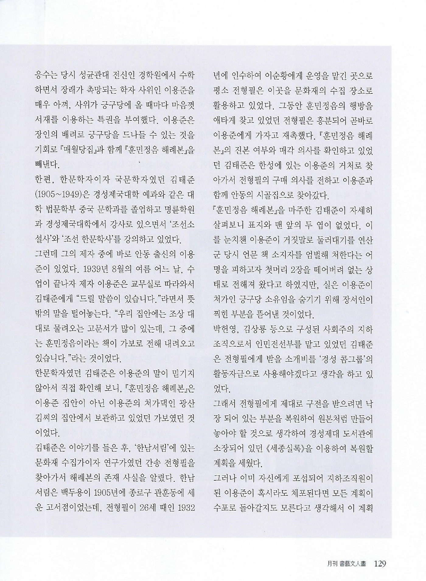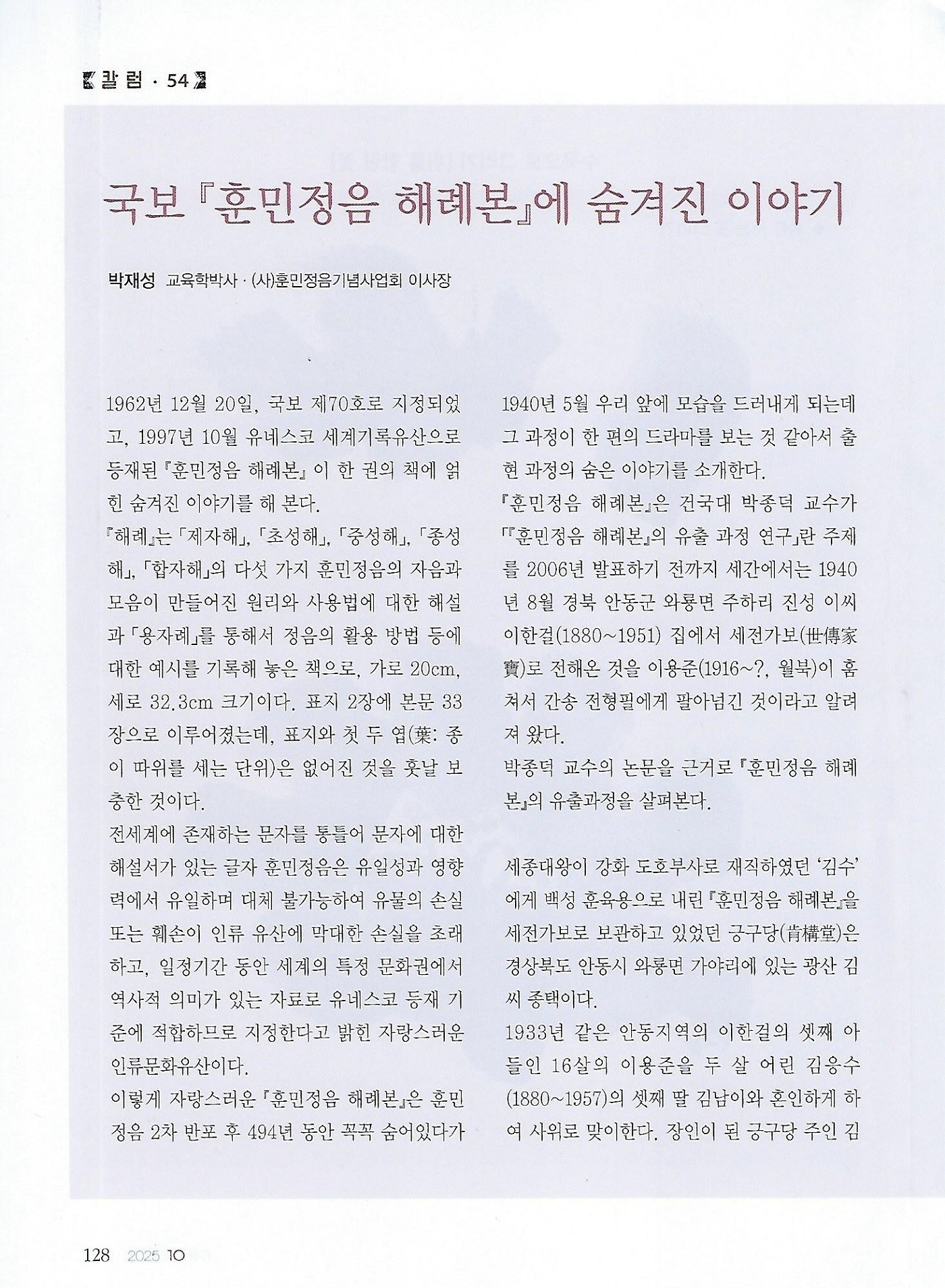 [칼럼 54] 국보 <훈민정음해례본>에 숨겨진 이야기