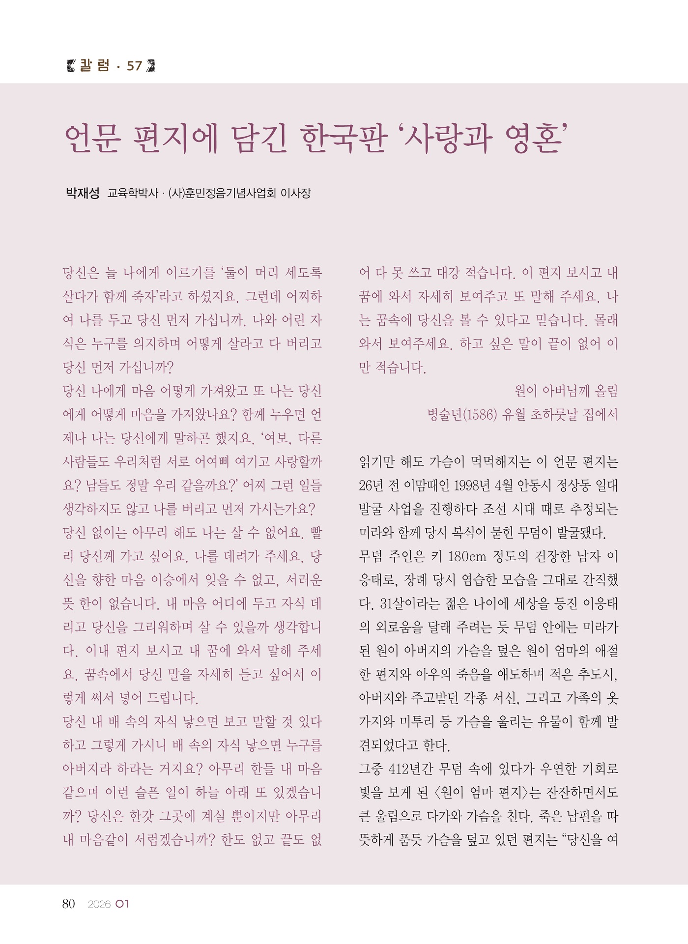 [칼럼 57] 언문 편지에 담긴 한국판 '사랑과 영혼'