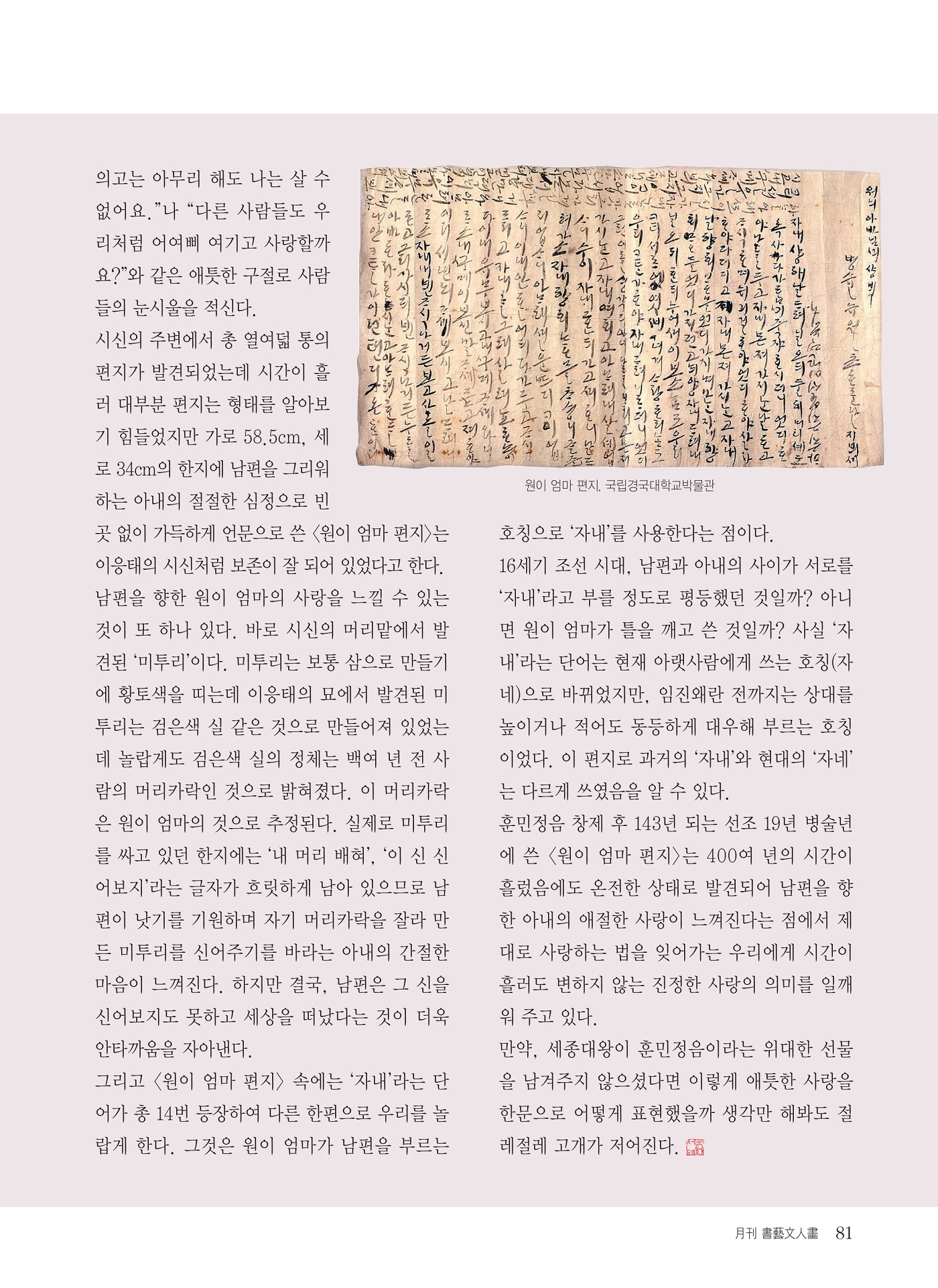[칼럼 56] 보물로 지정된 언문 사랑 편지