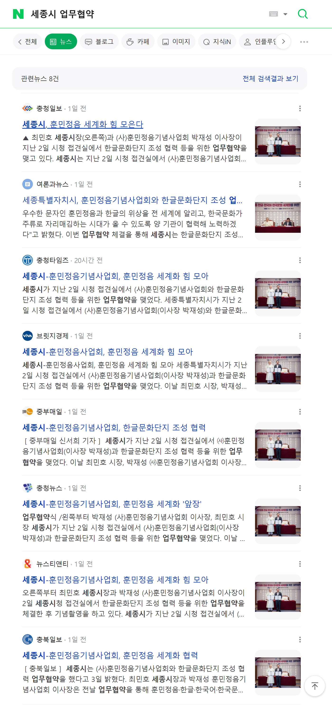 [충청권 언론] 세종시-훈민정음기념사업회 업무협약 비중있게 보도