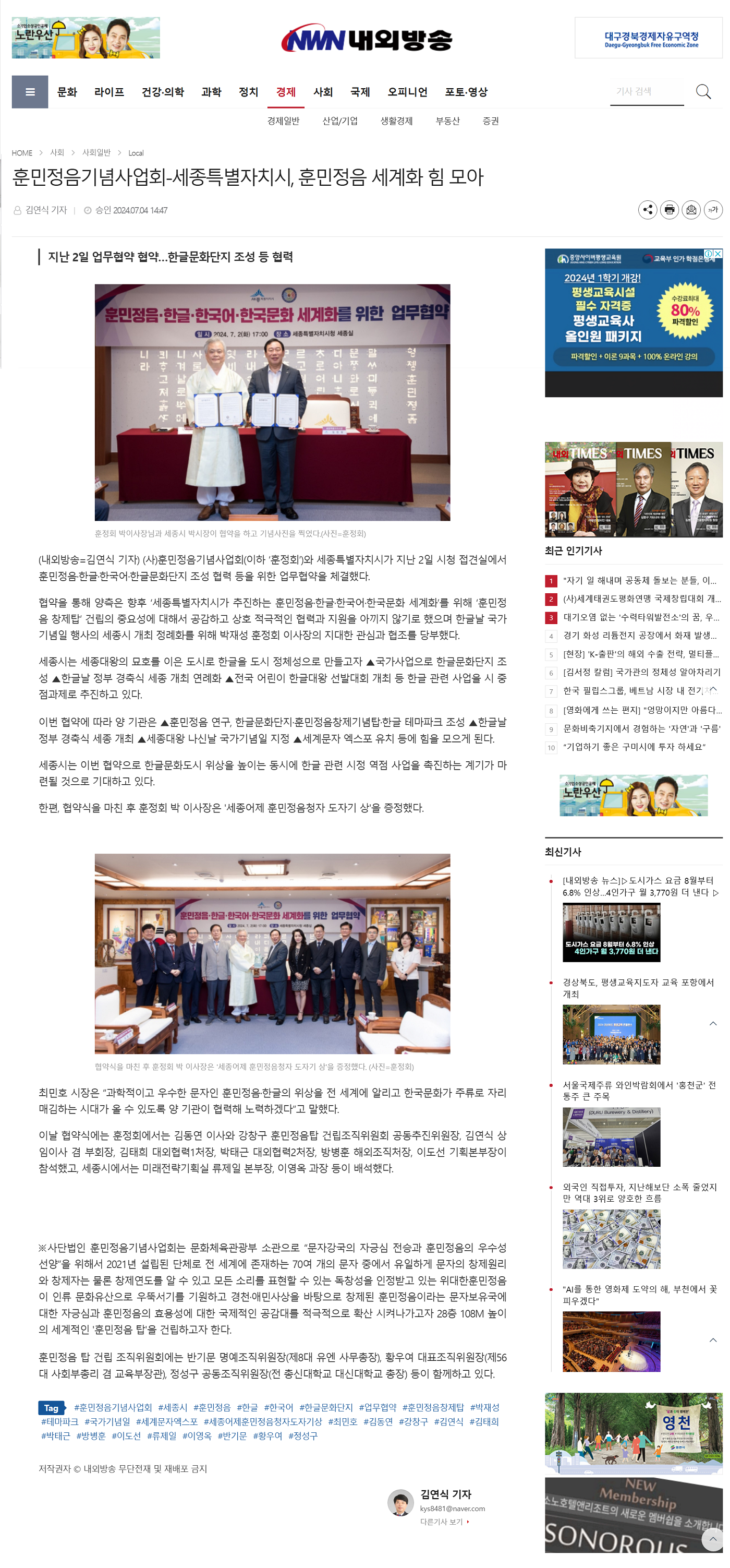 훈민정음 경산 칼럼