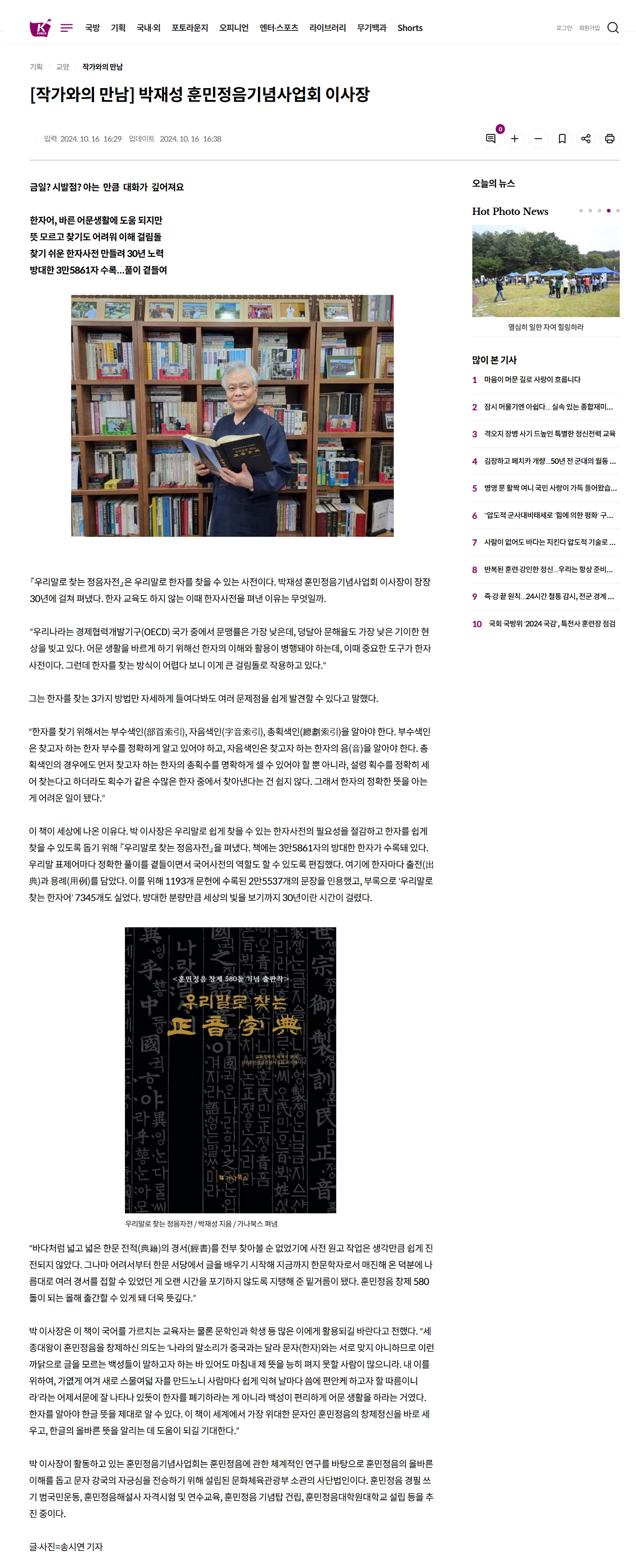 [국방일보] 박재성 이사장 저서 <우리말로 찾는 정음자전> 특별소개