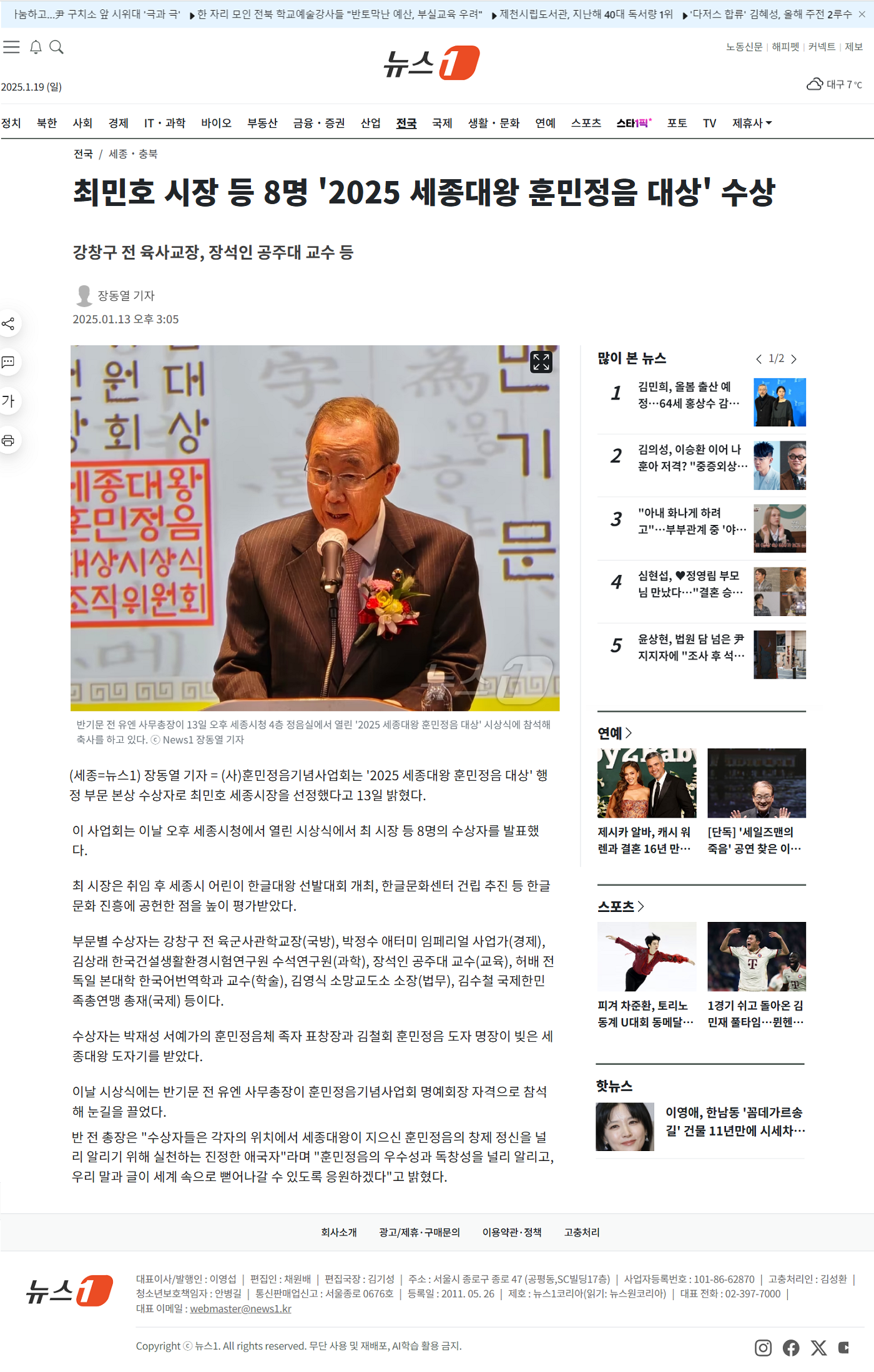 [뉴스1] 최민호 시장 등 8명 '2025 세종대왕 훈민정음 대상' 수상