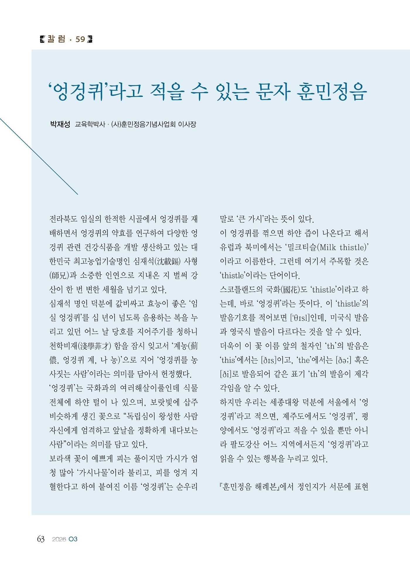 [칼럼 59] '엉겅퀴'라고 적을 수 있는 문자 훈민정음