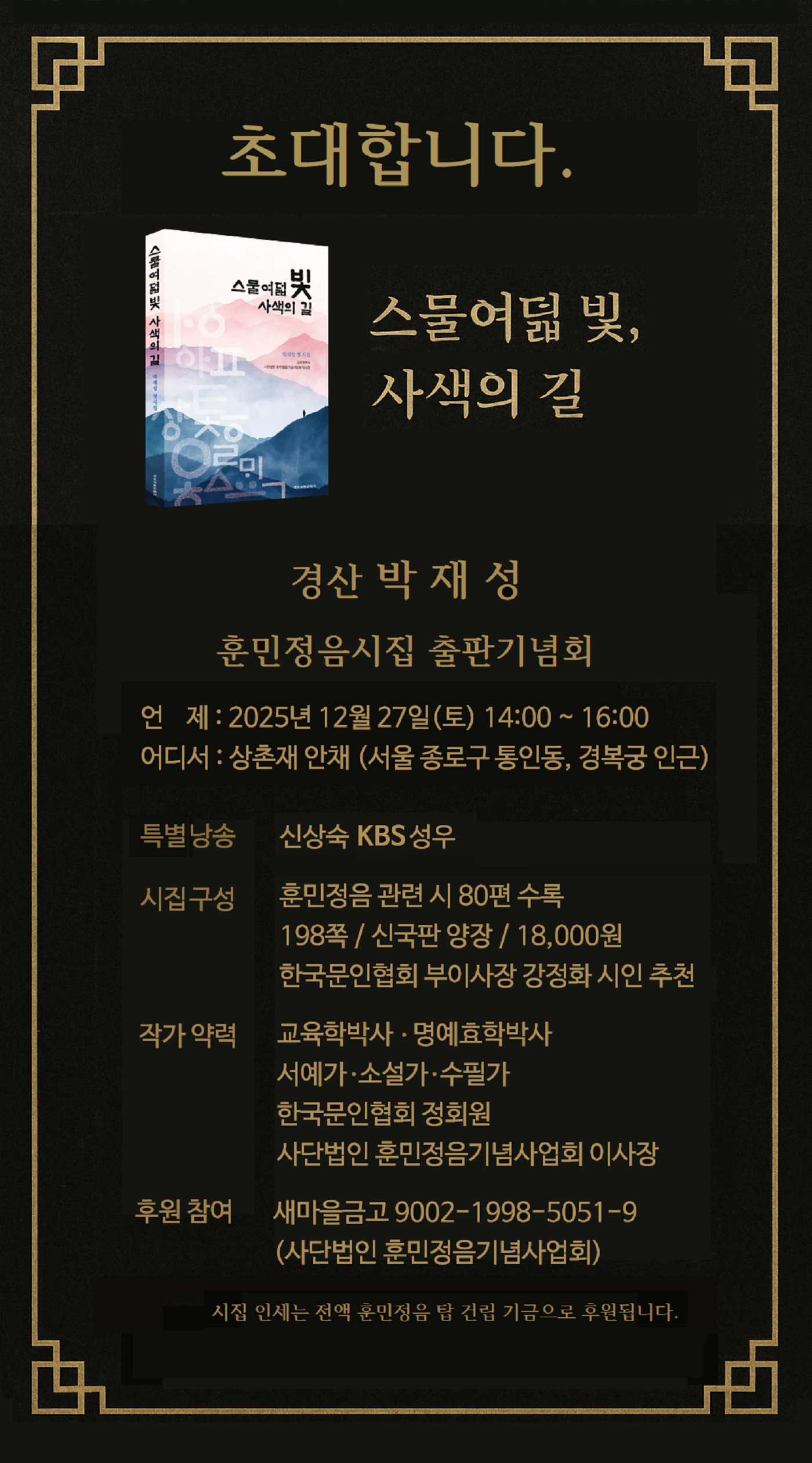 <스물여덟 빛, 사색의 길> 박재성 시집 출판기념회 초대.