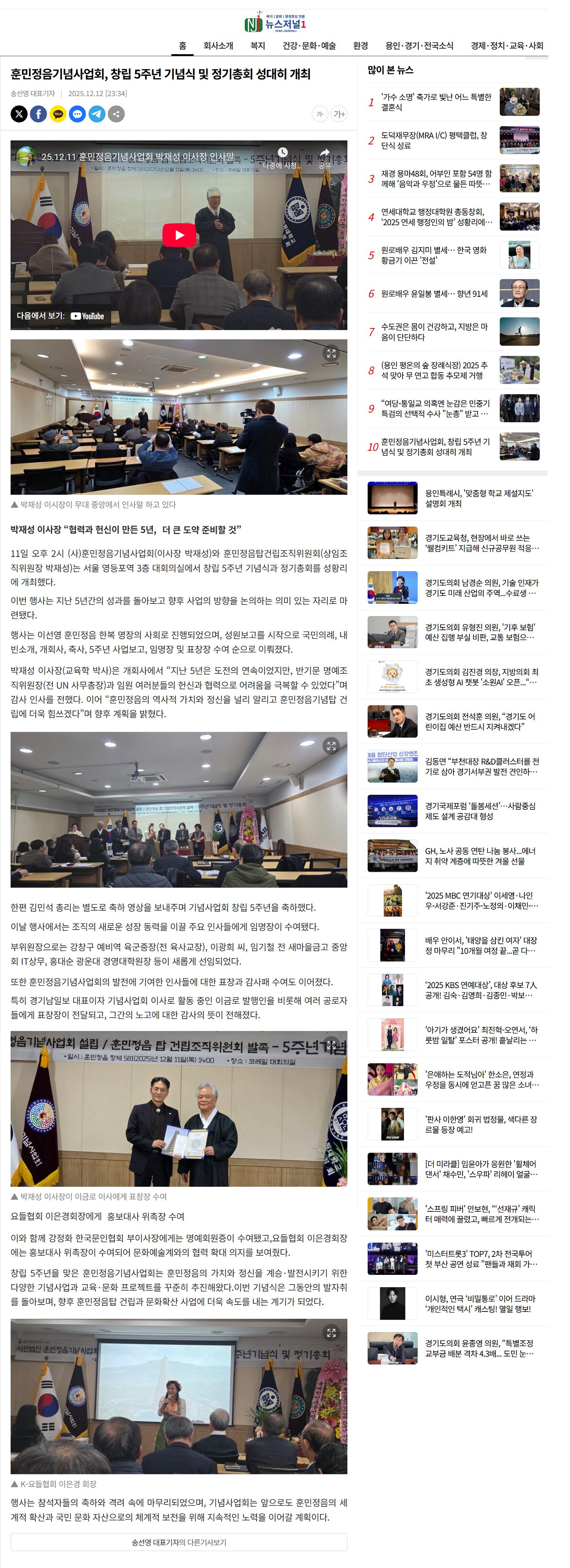 [뉴스저널1] 훈민정음기념사업회, 창립 5주년 기념식 및 정기총회 성대히 개최