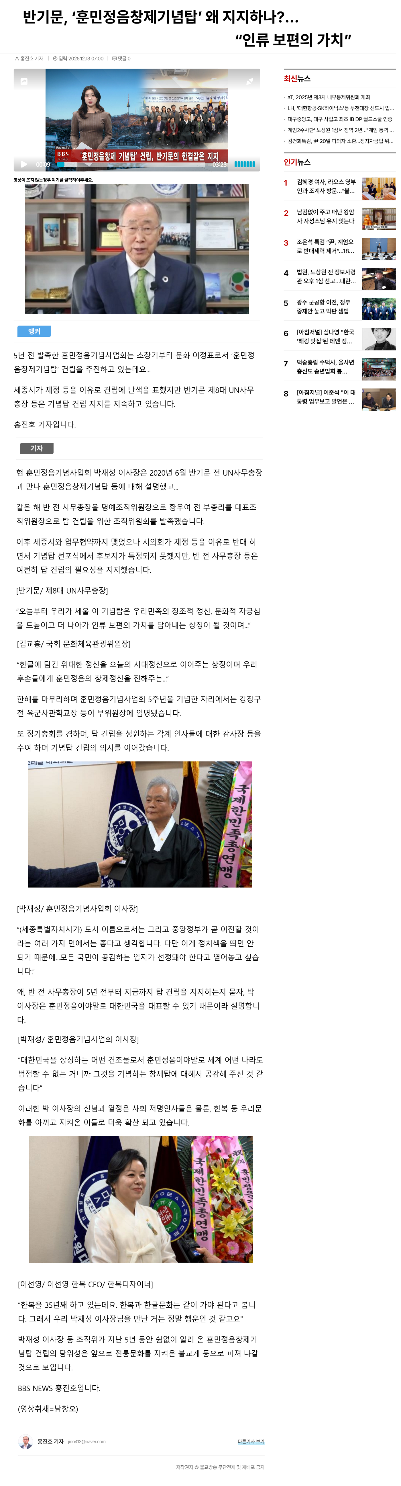 [BBS-TV] 반기문, '훈민정음창제기념탑' 왜 지지하나?
