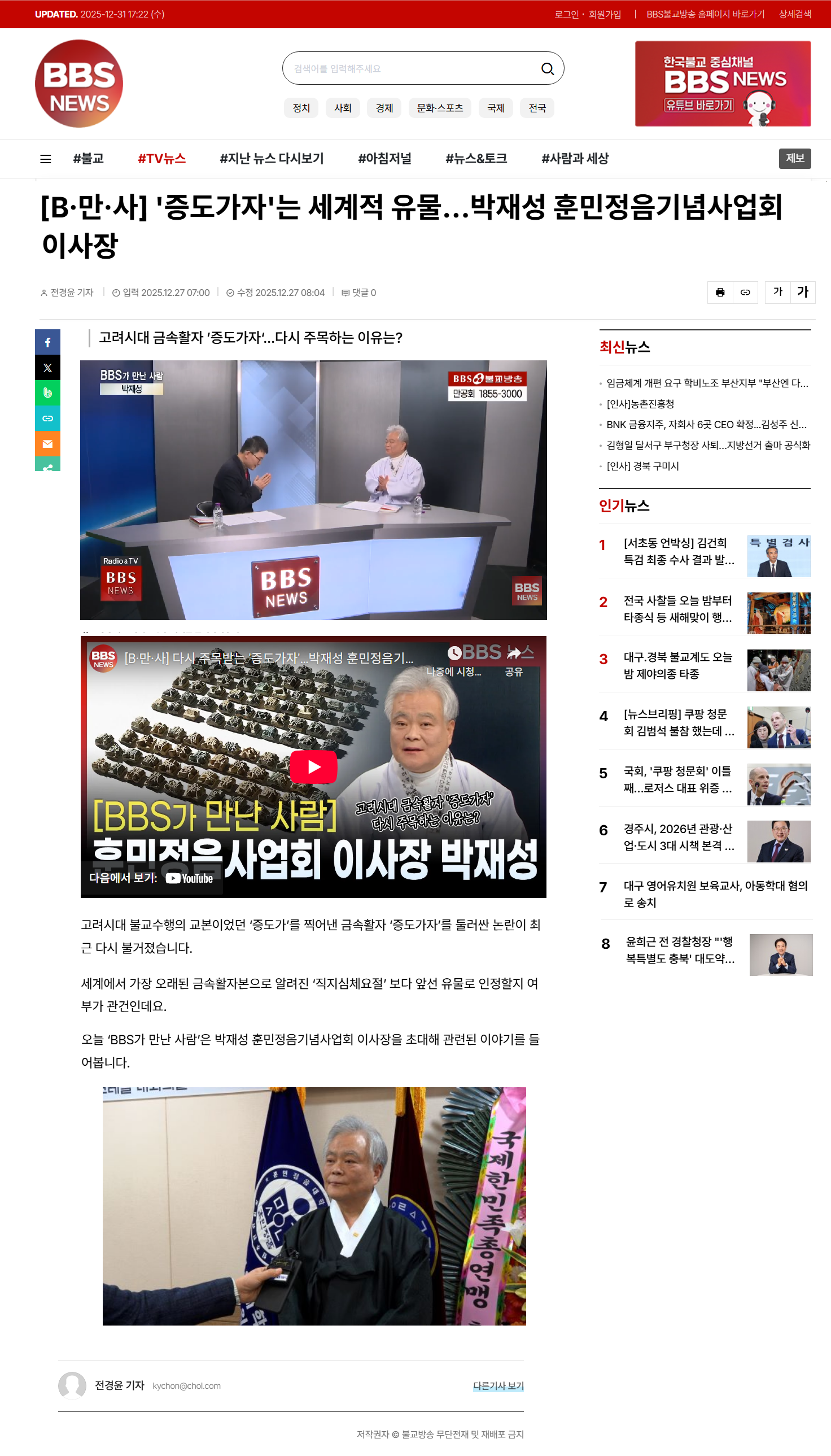 [BBS] '증도가자'는 세계적 유물…박재성 훈민정음기념사업회 이사장