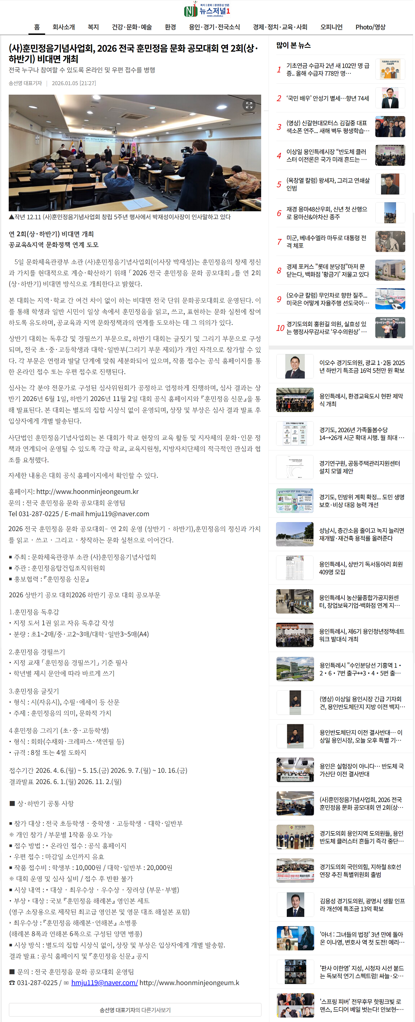 [뉴스저널1] 2026 전국 훈민정음 문화 공모대회 비대면 개최
