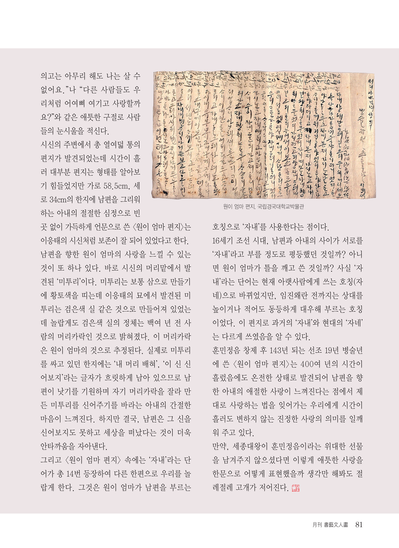 [월간서예문인화] 언문 편지에 담긴 한국판 '사랑과 영혼'