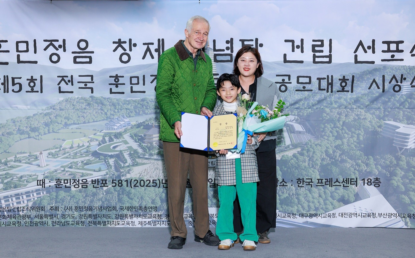 《훈민정음해례본》한 가정 한 권 소장운동 제7호 소장자는 전남 광양 백운초등학교 4학년에 재학 중인 강동헌 군 가족이다.