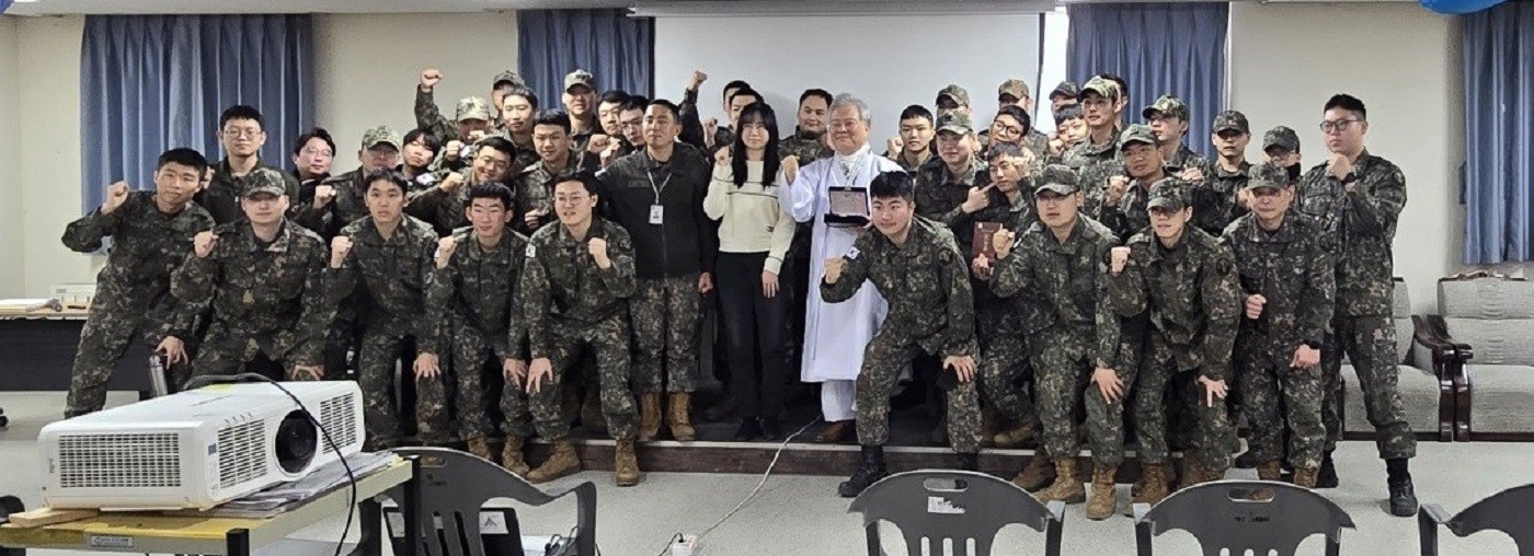 5군단 본부대 특강 후 장병들과 기념 촬영하는 박재성 이사장